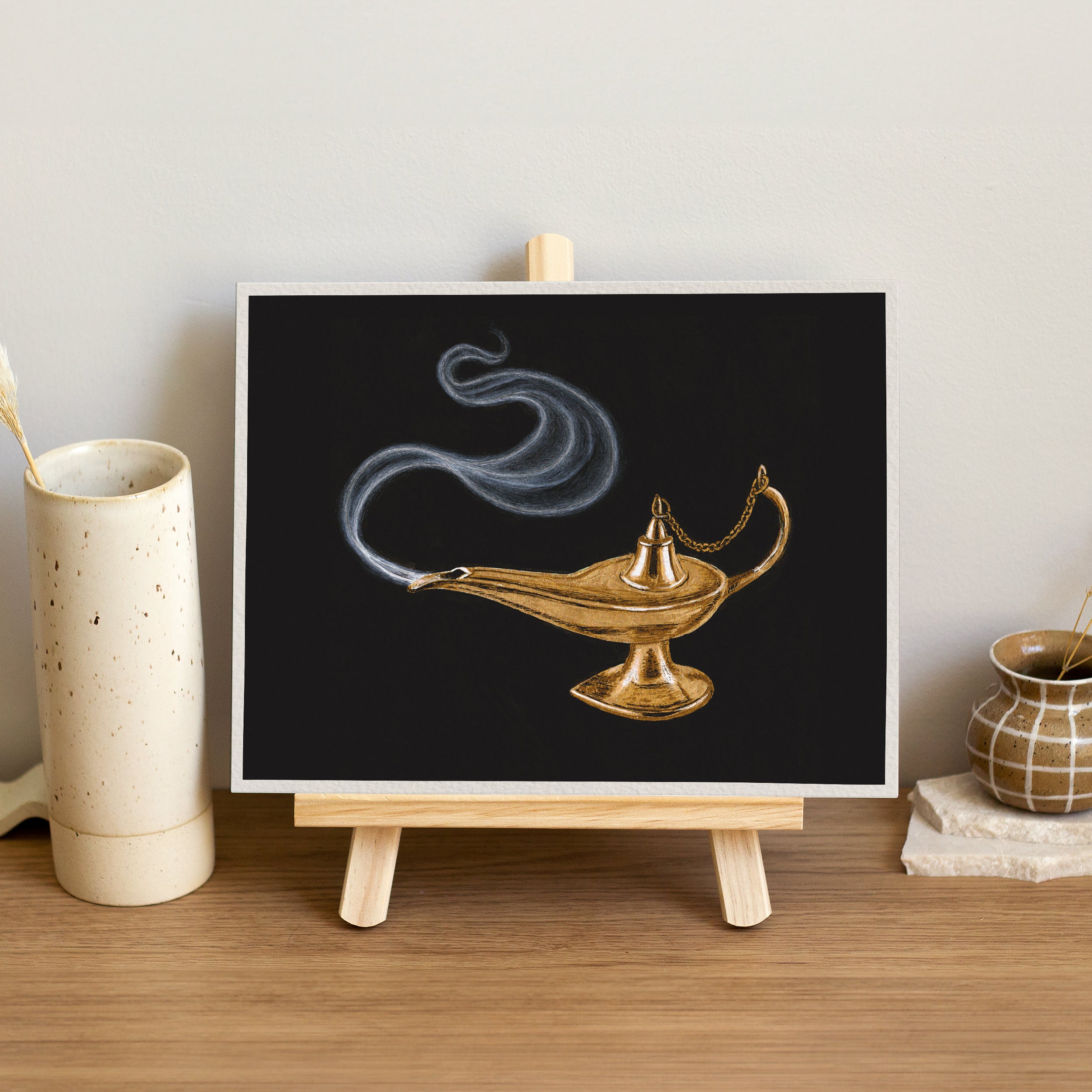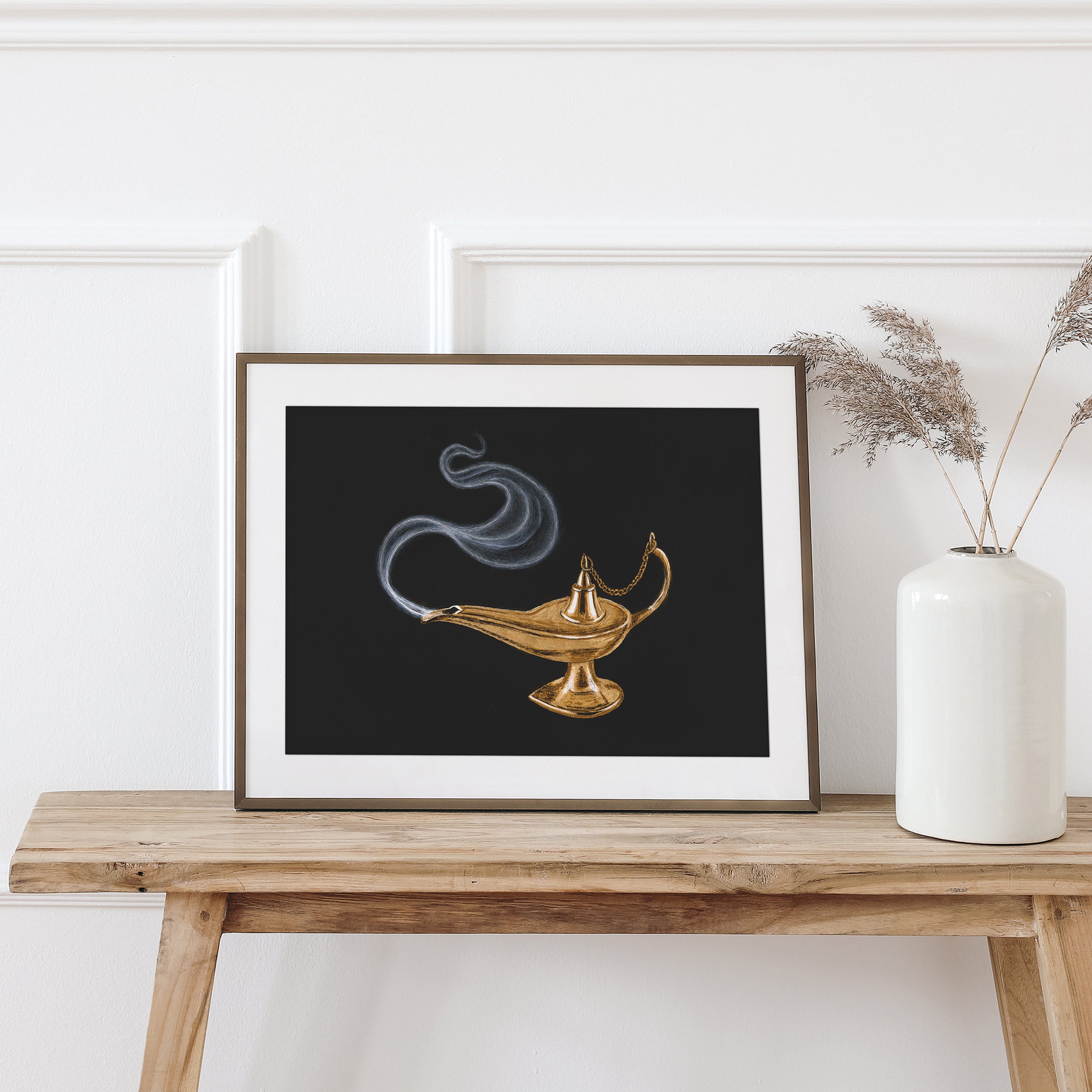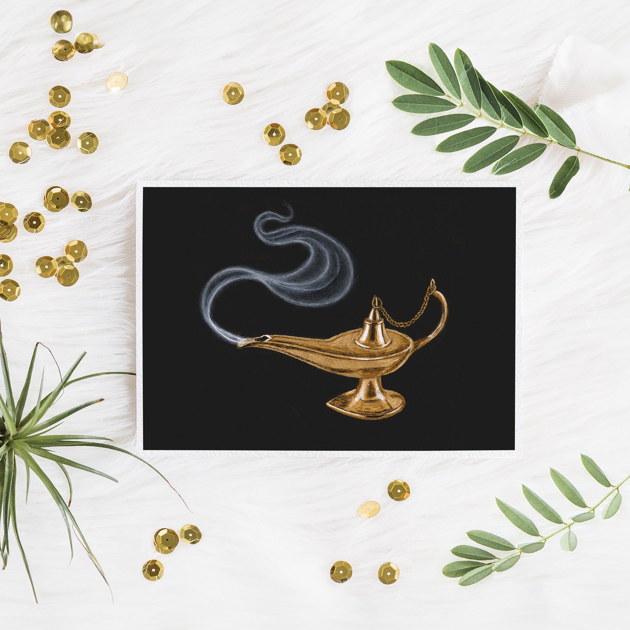 Be transported to the magical realm of Agrabah as you remember the adventure and nostalgia you so loved to share with Aladdin, Genie and the Magic Lamp! This handmade art print is the perfect complement to any moody office, fairytale themed child’s bedroom, or to simply add a little whimsy and magic to your home décor.