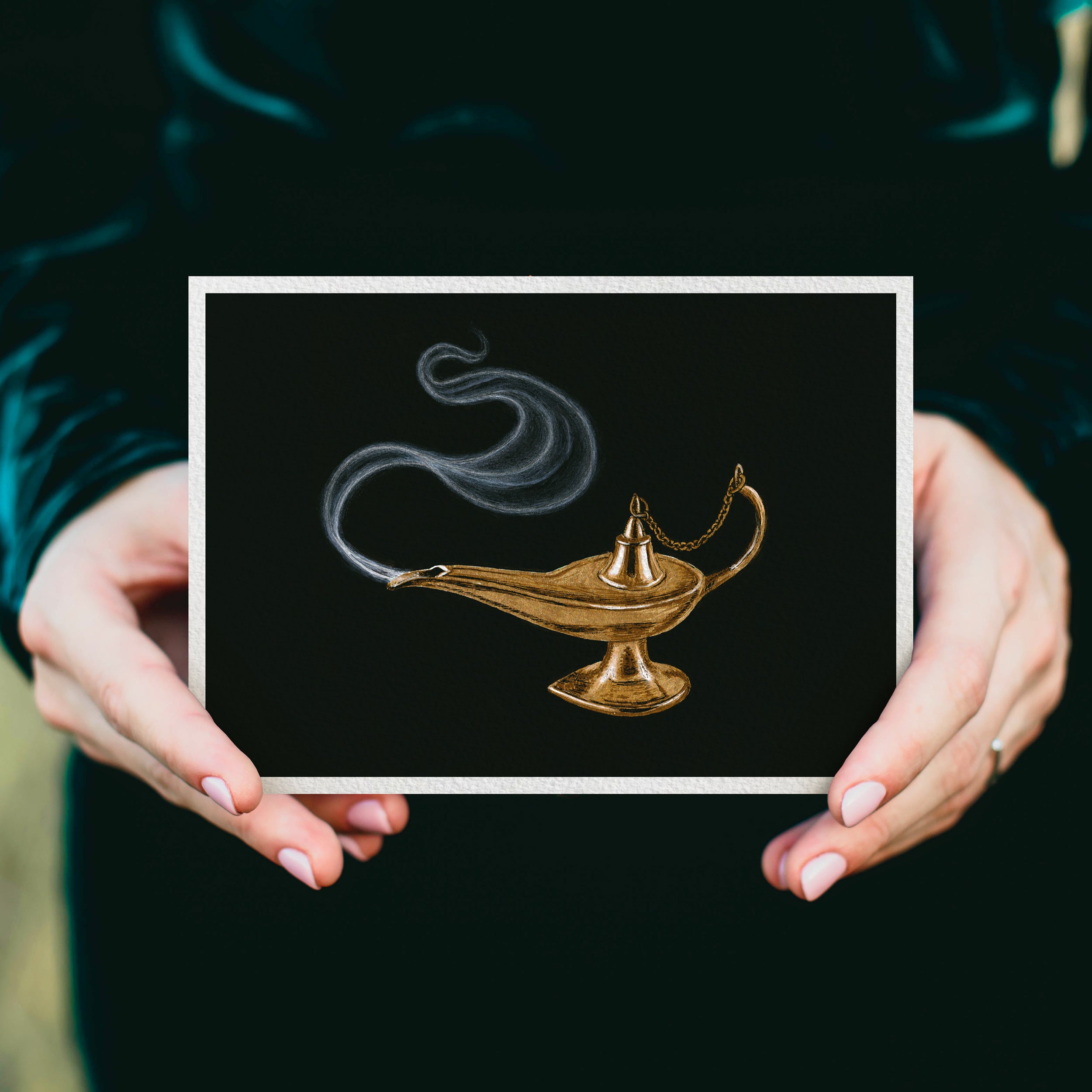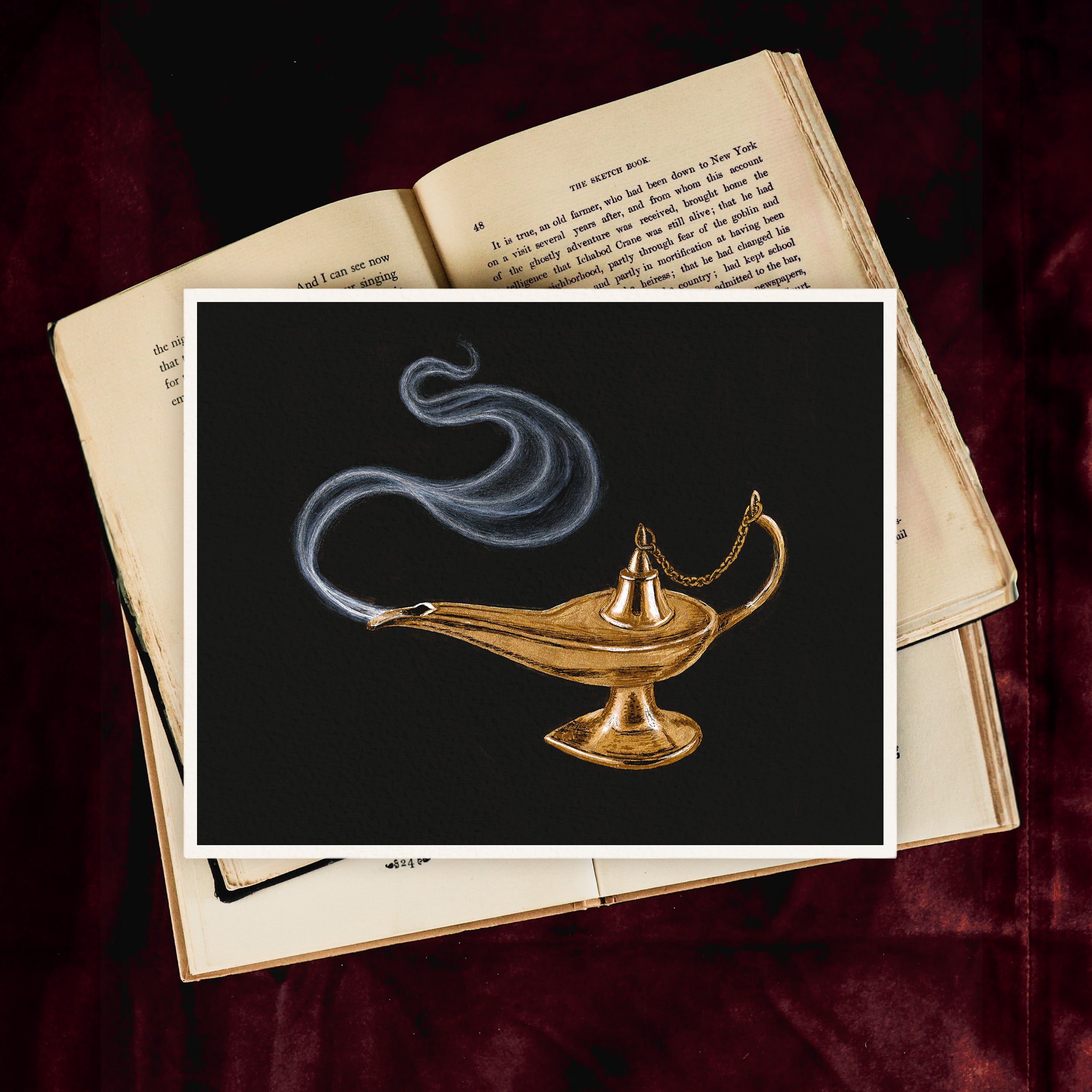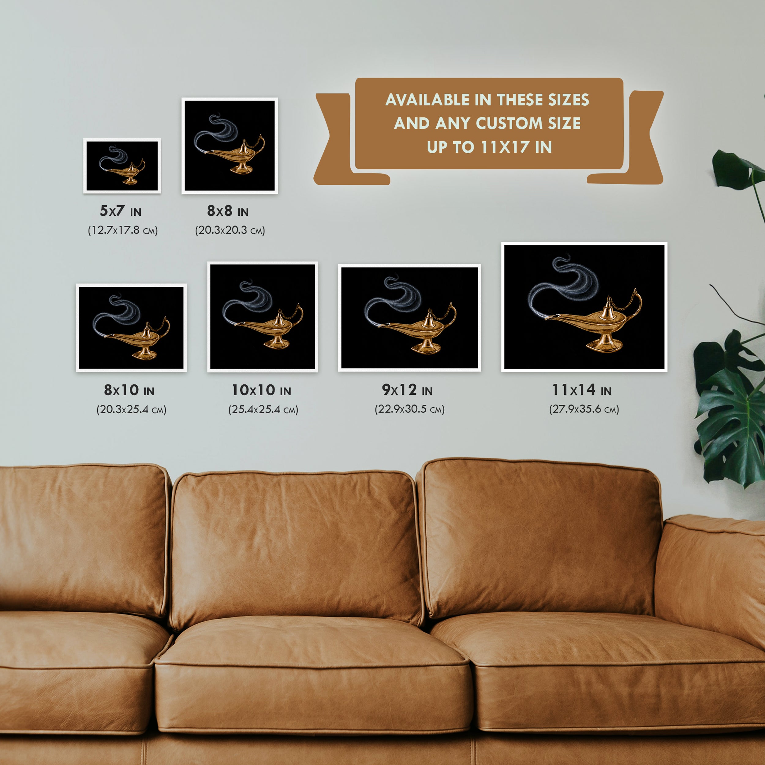 Be transported to the magical realm of Agrabah as you remember the adventure and nostalgia you so loved to share with Aladdin, Genie and the Magic Lamp! This handmade art print is the perfect complement to any moody office, fairytale themed child’s bedroom, or to simply add a little whimsy and magic to your home décor.