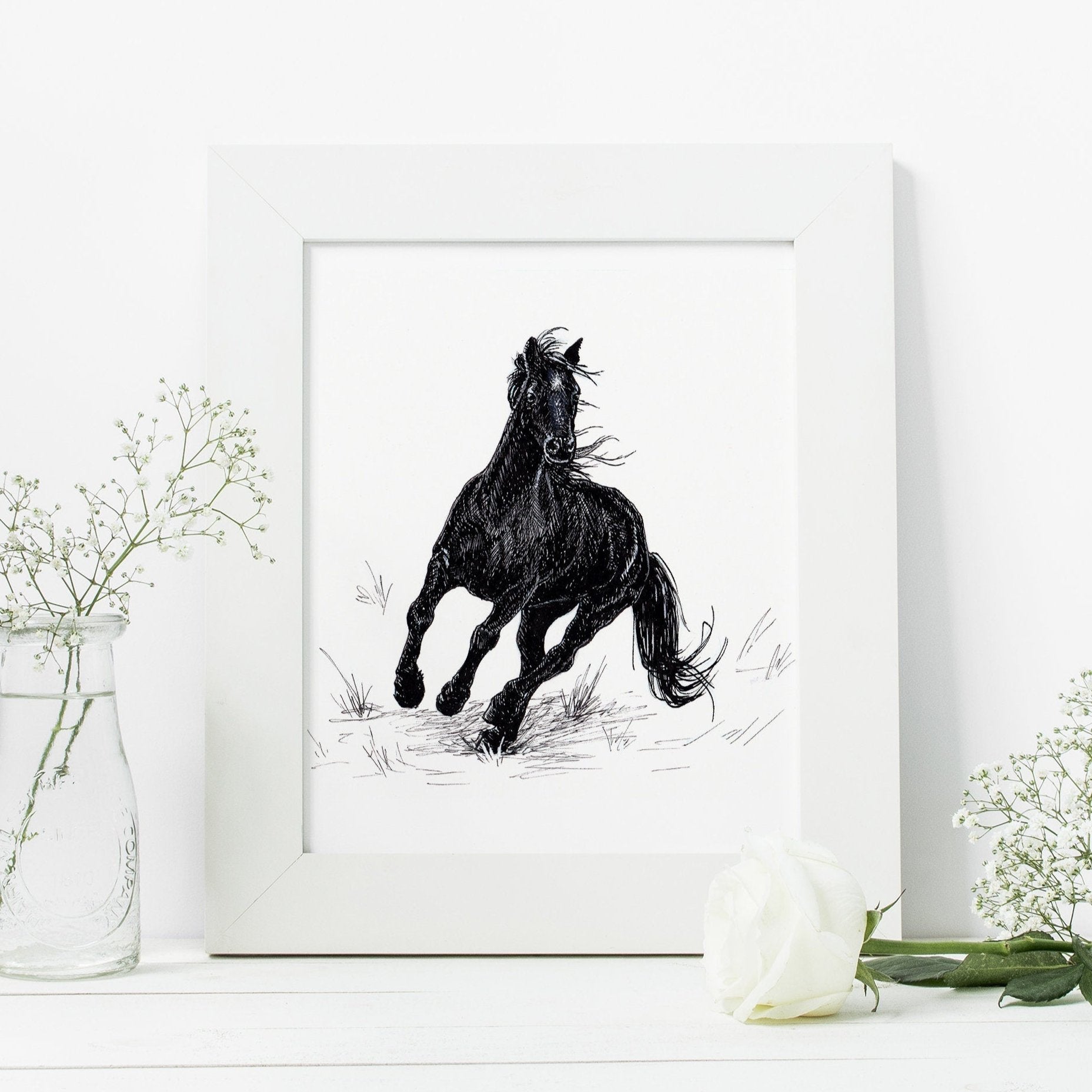 Black Beauty Horse Art Print