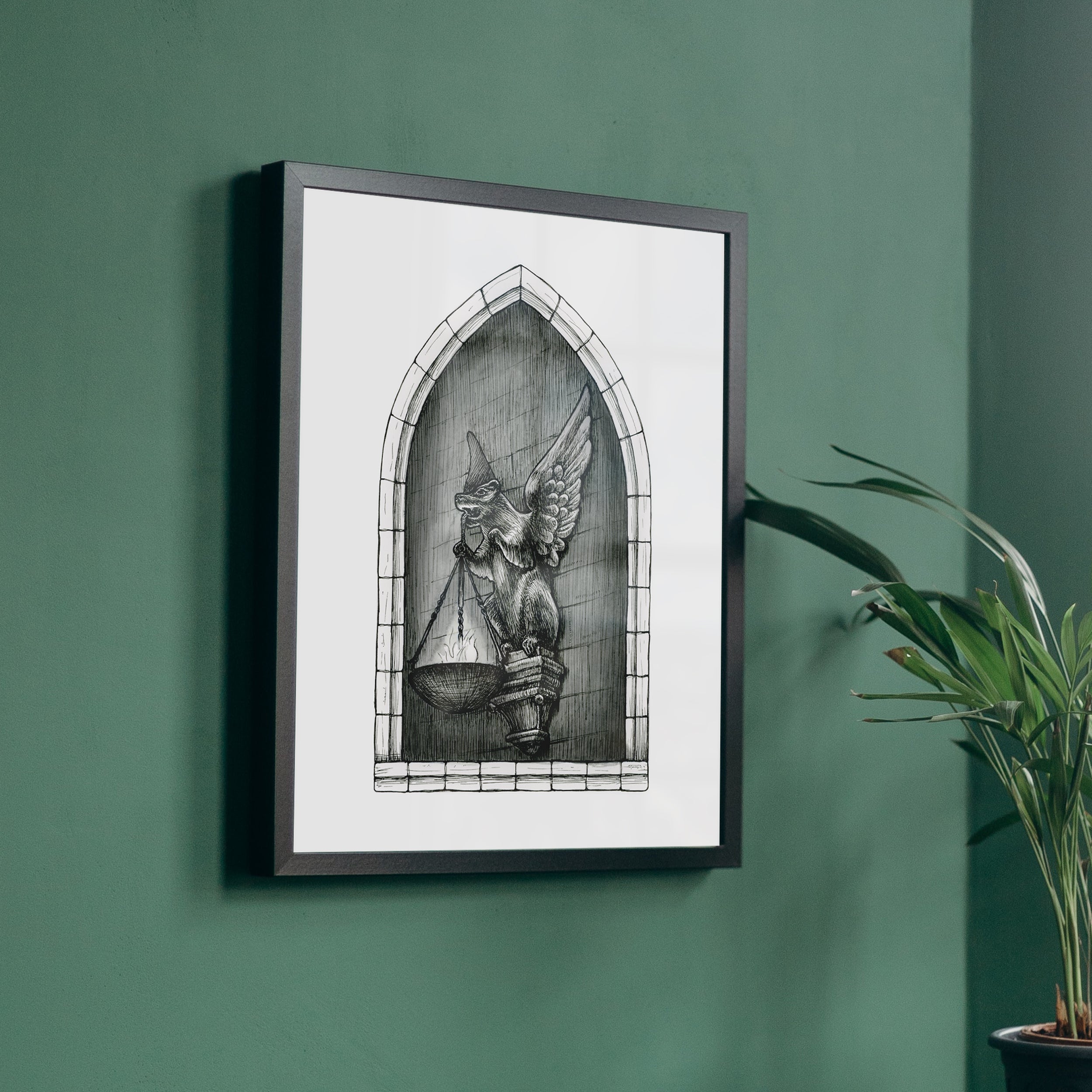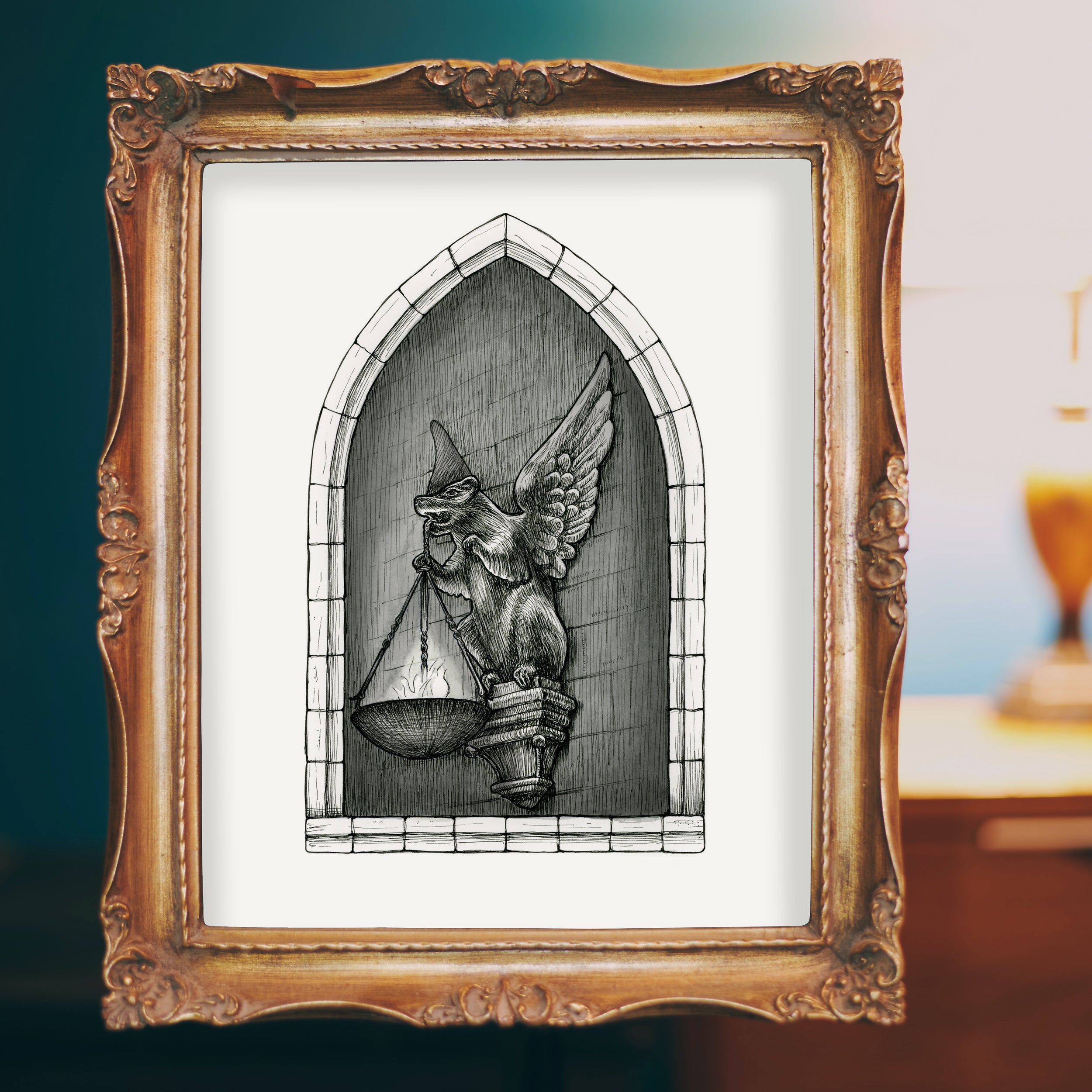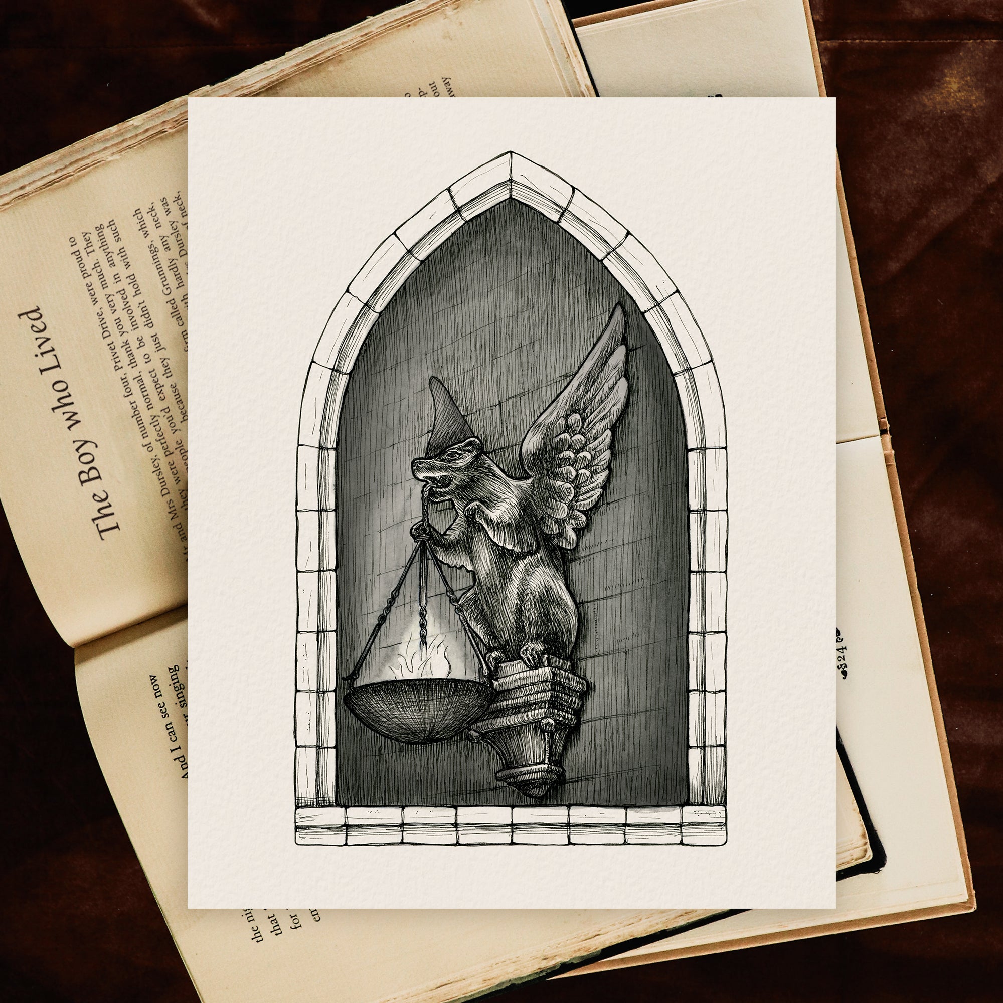 Hogwarts Hufflepuff House Gargoyle Art Print