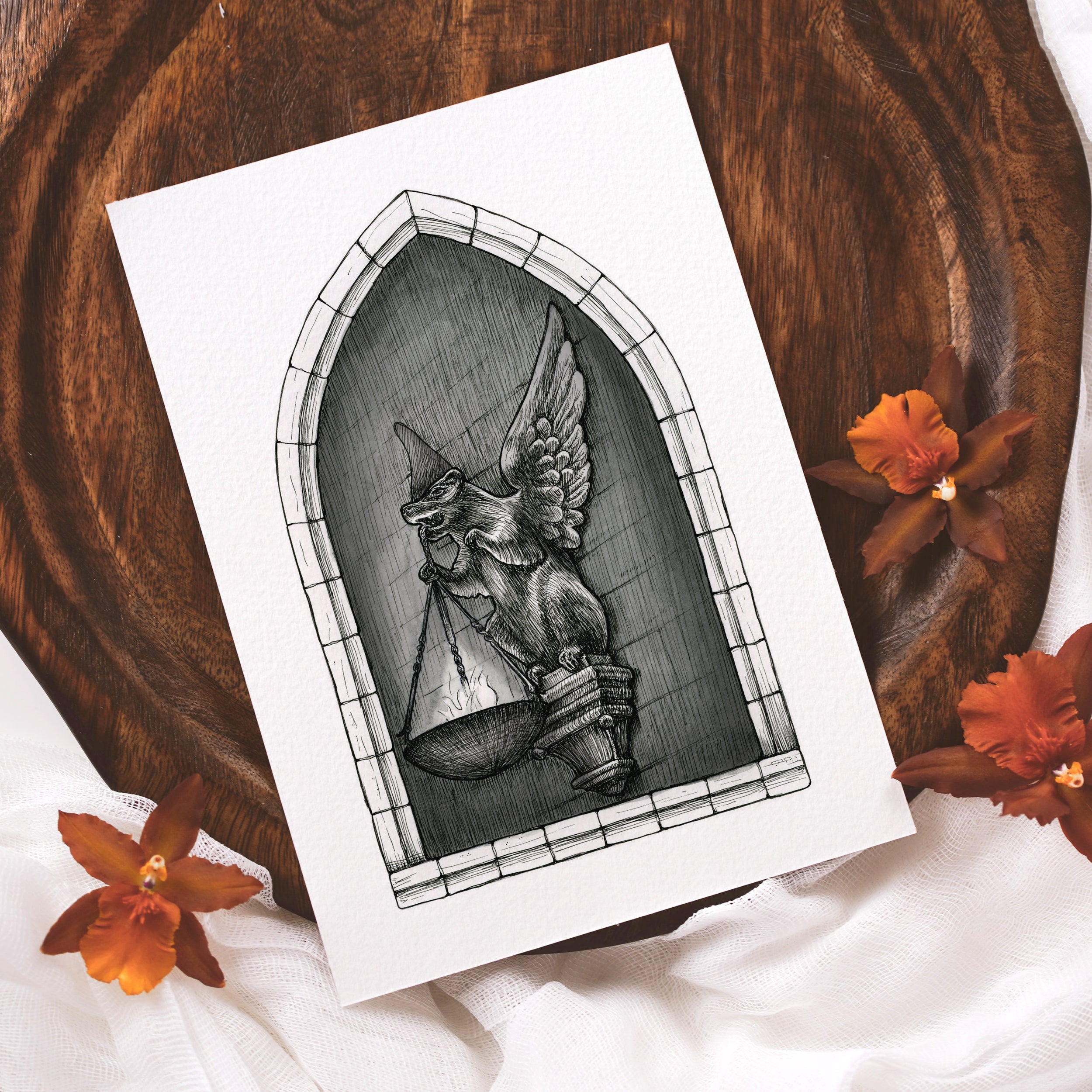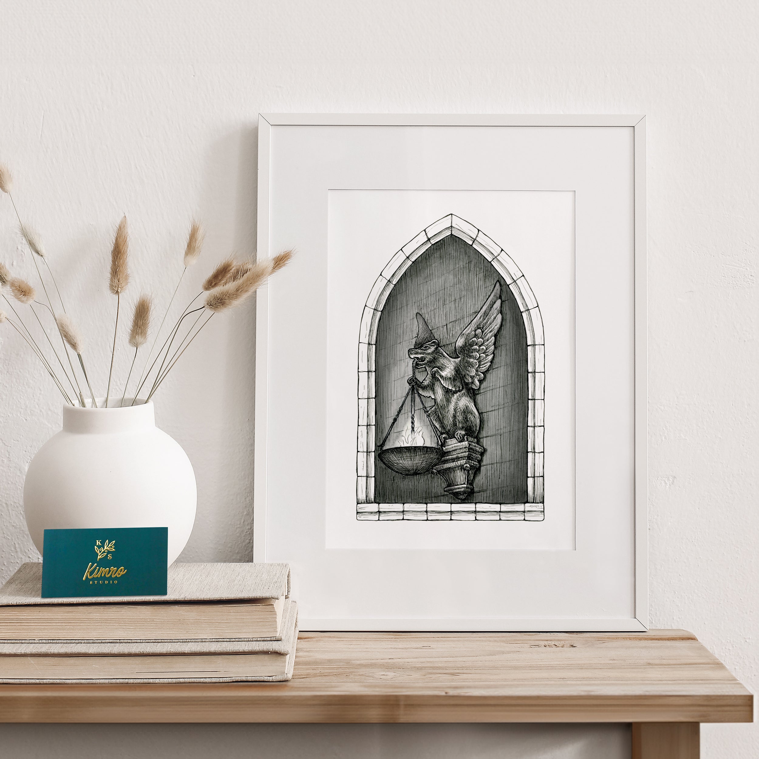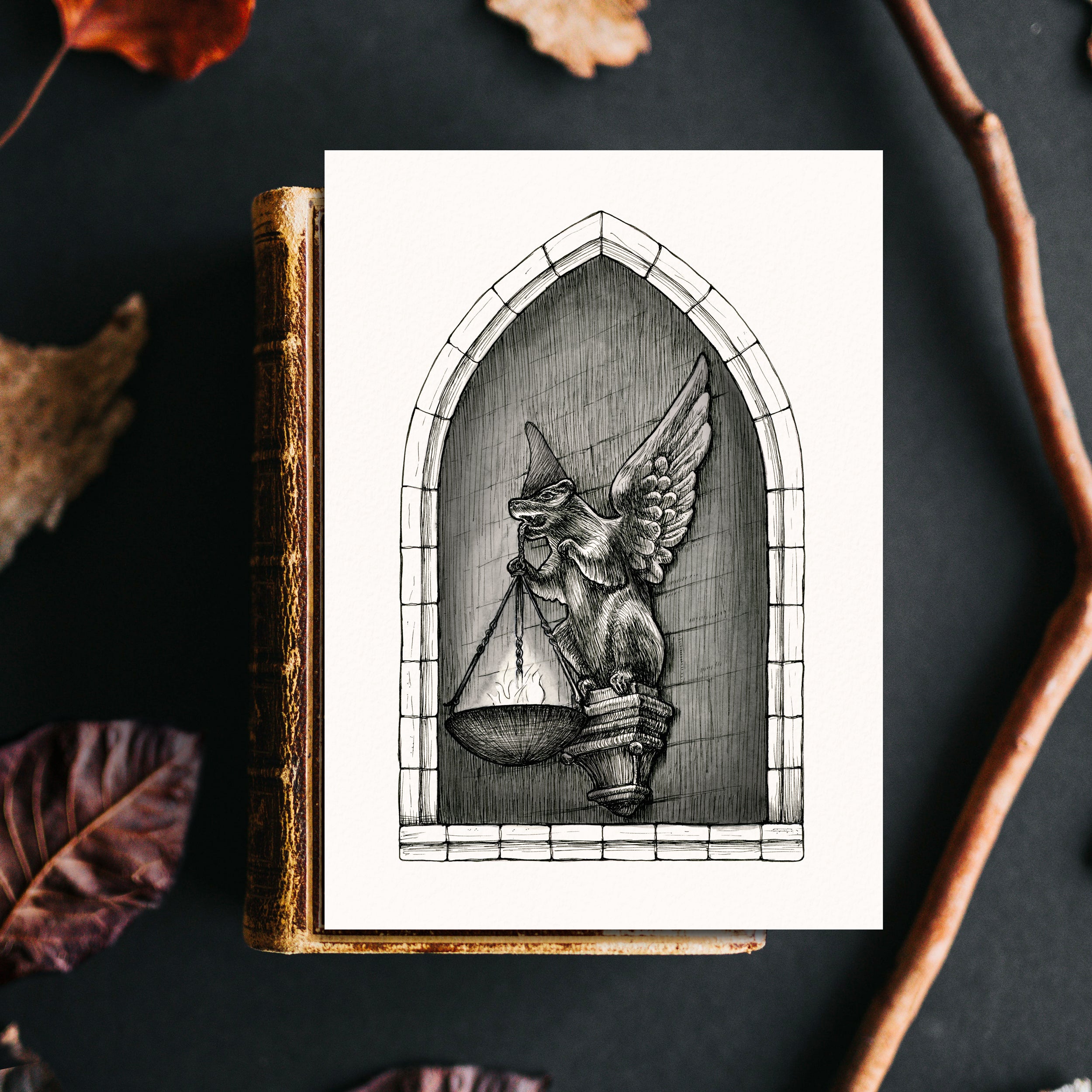 Hogwarts Hufflepuff House Gargoyle Art Print