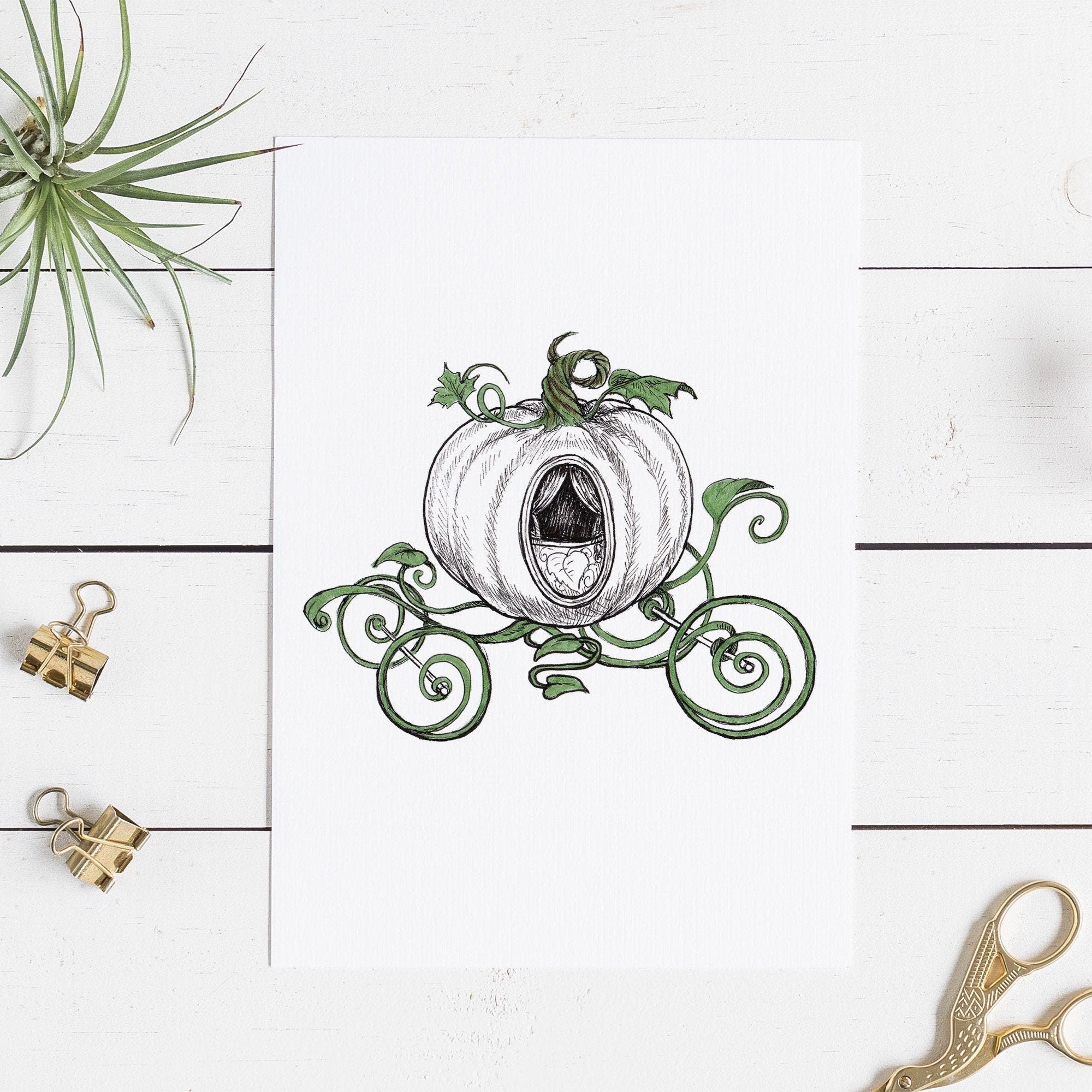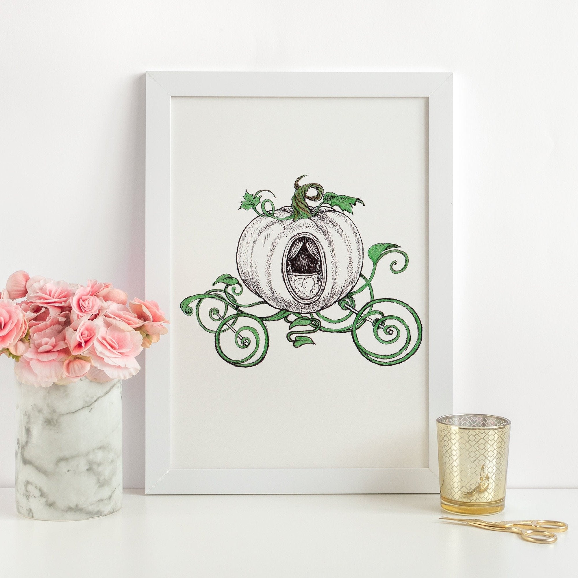Add a touch of Fairy Godmother magic to any room with this whimsical print of Cinderella's pumpkin carriage. Perfect décor for lovers of fairytales, folklore and classic literature. The original artwork was created using ink on watercolor paper.