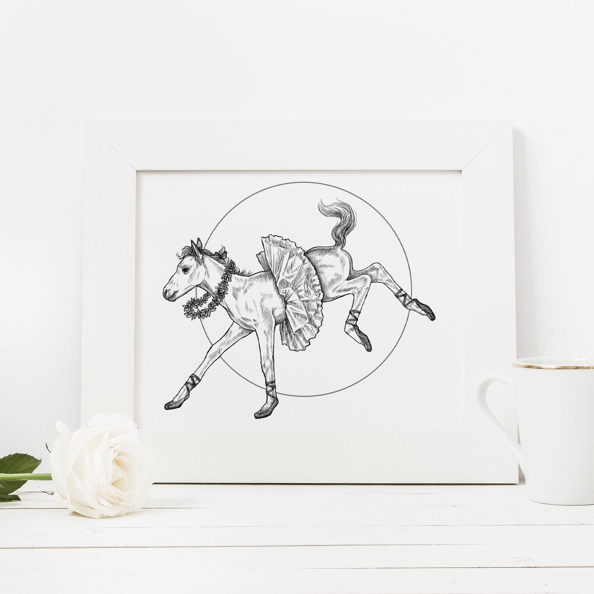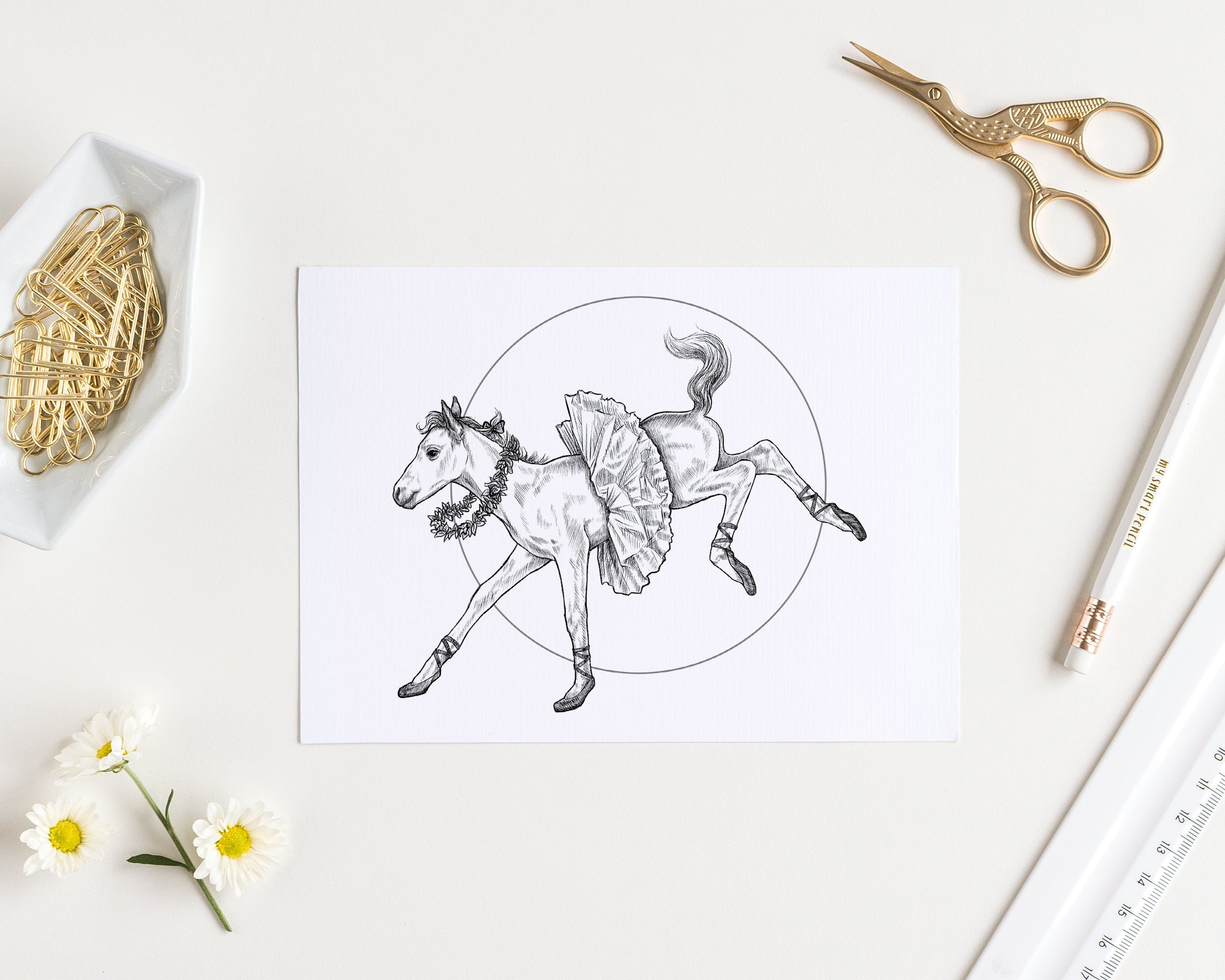 The original artwork was drawn digitally and features a cute little horse trying out their new ballet slippers!