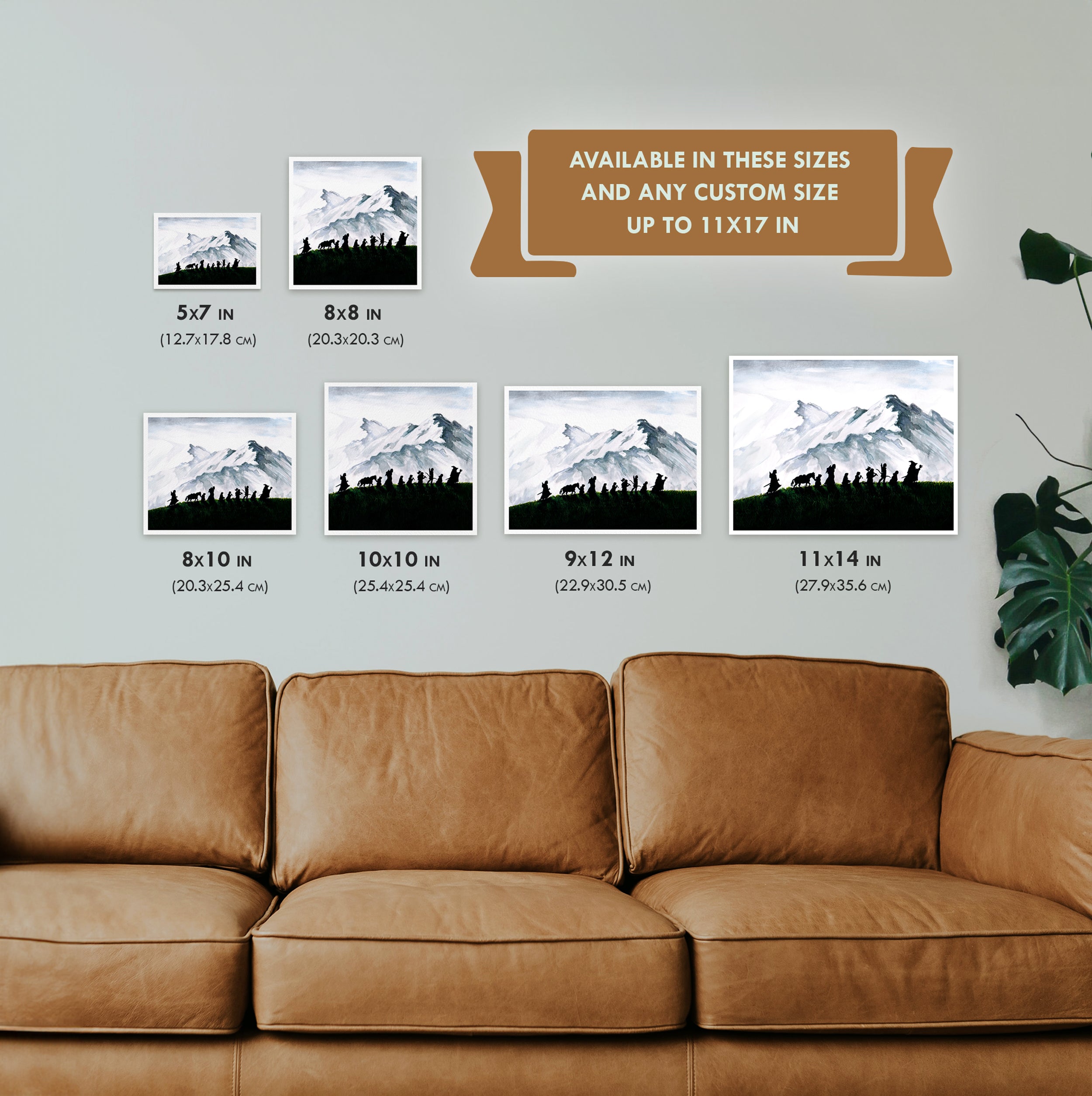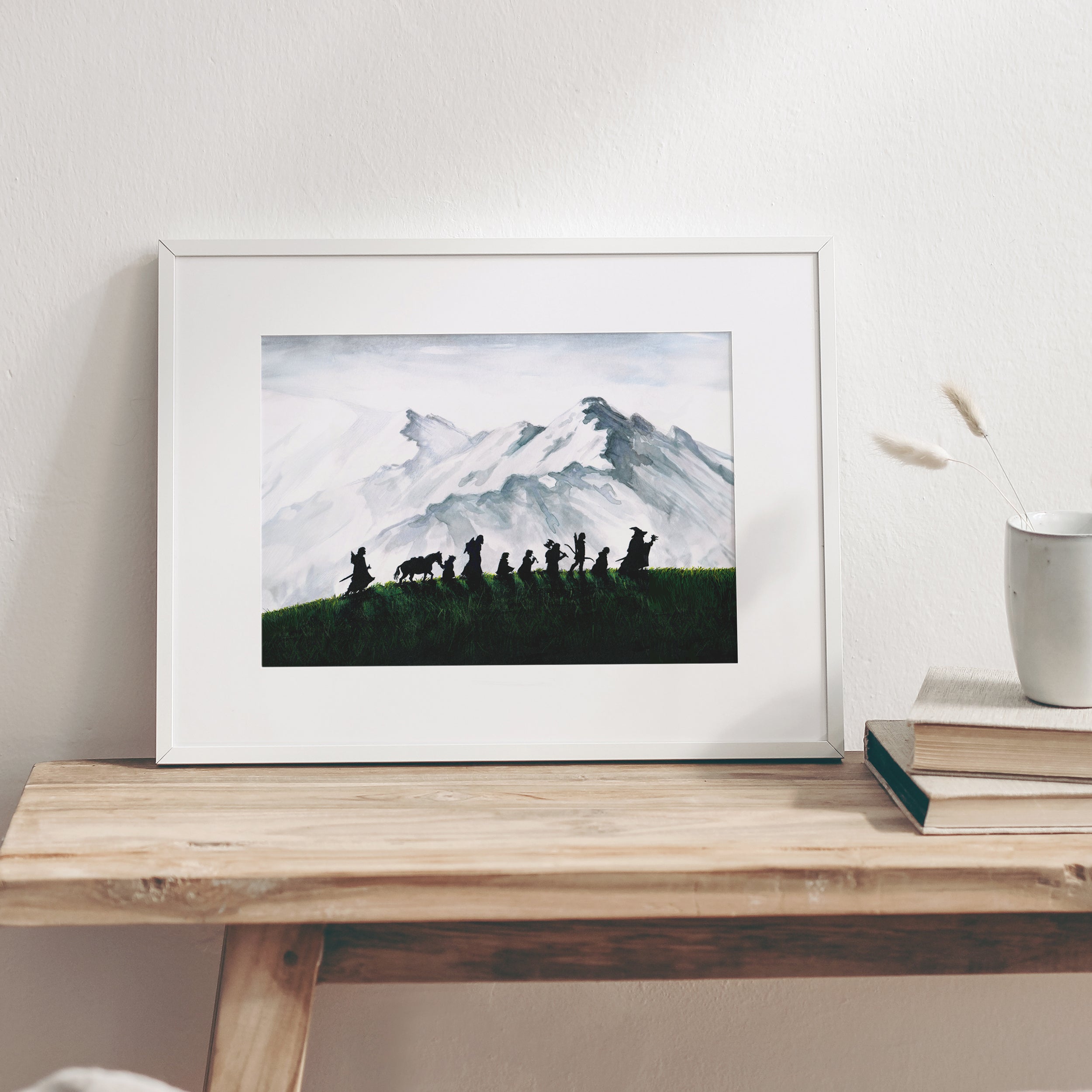 Be swept away to Middle Earth with the Fellowship on their perilous journey to Mordor! A perfect complement to any fantasy fandom, magically styled space, or as a gift to a friend.