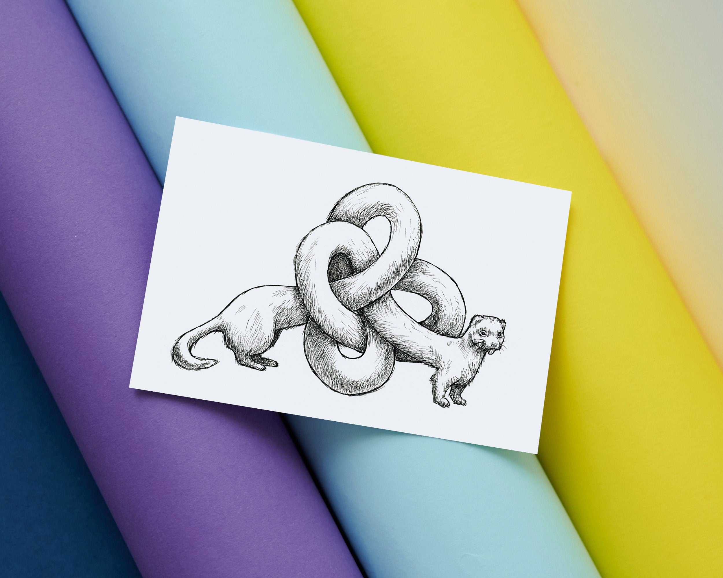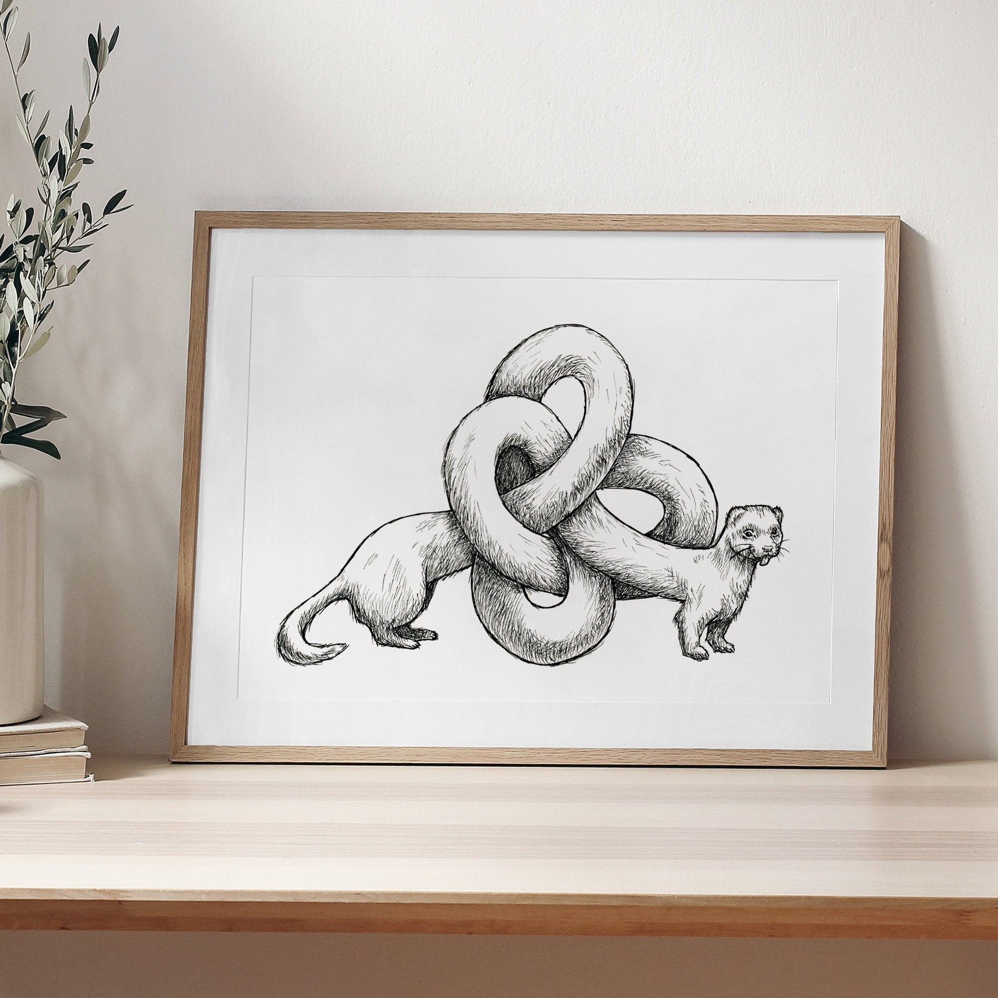 Add a dash of fun and whimsy to any space with this playful art print of an adorable and very loooong ferret who’s gotten themself into a bit of trouble! Perfect as office or nursery décor, or as a gift for the ferret lover in your life.
