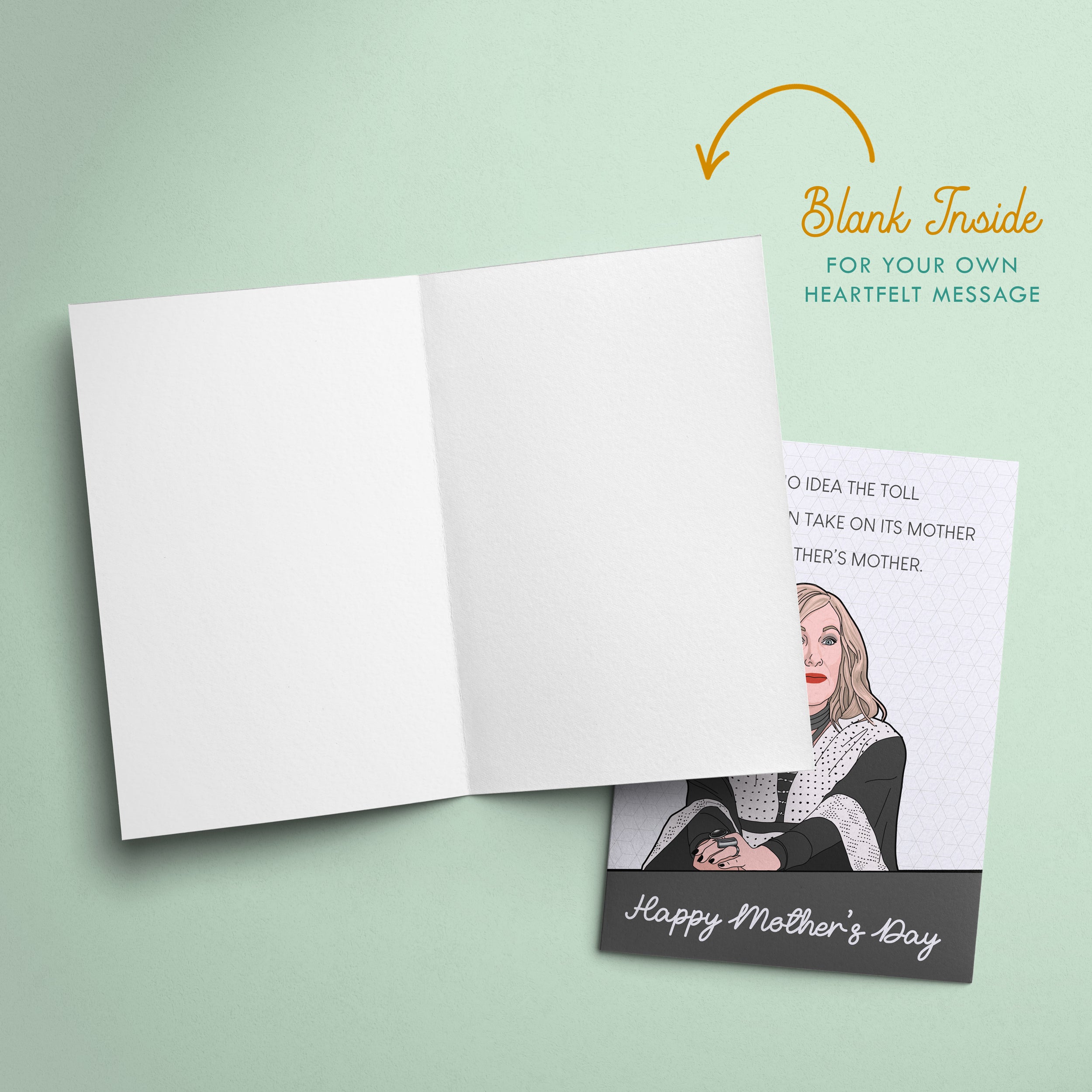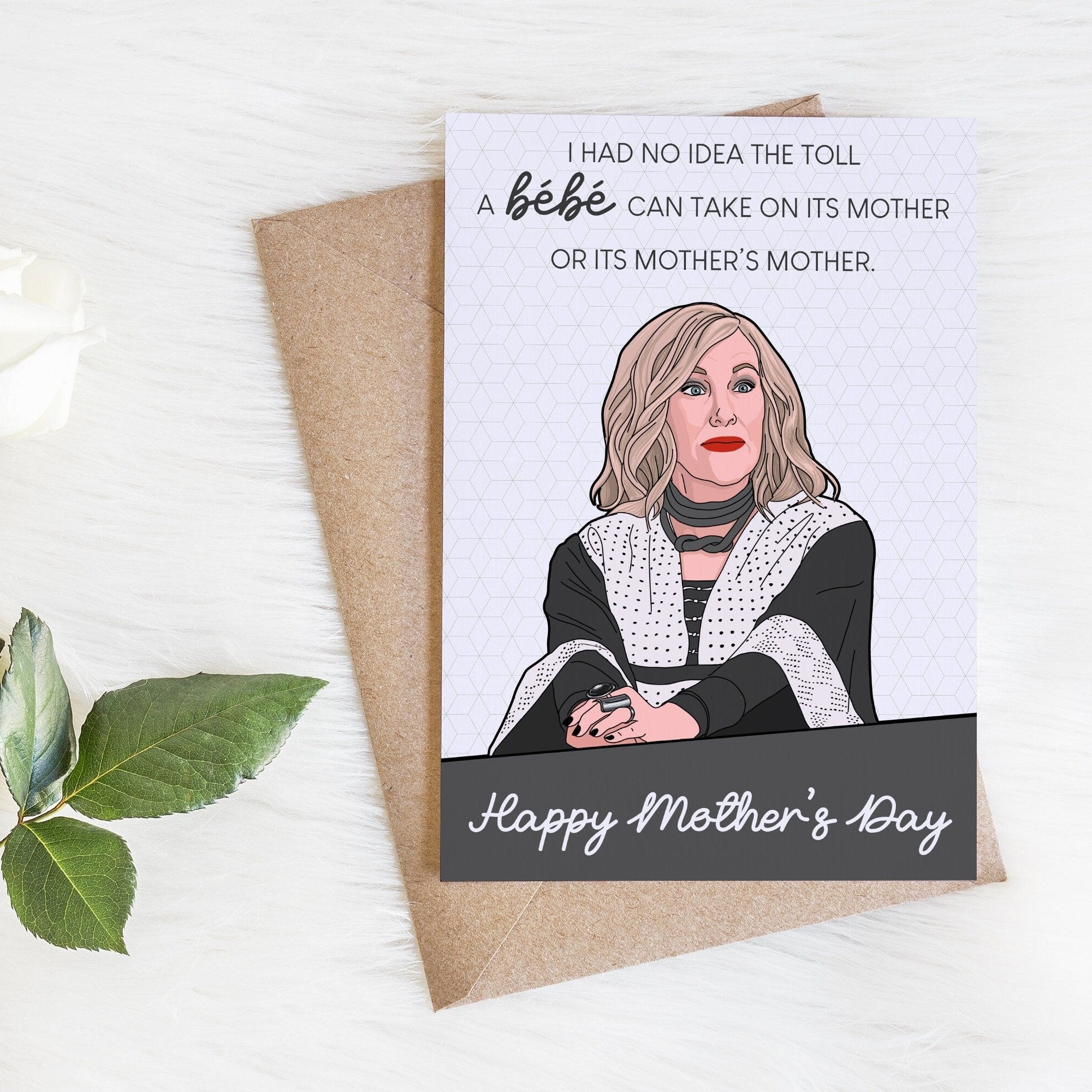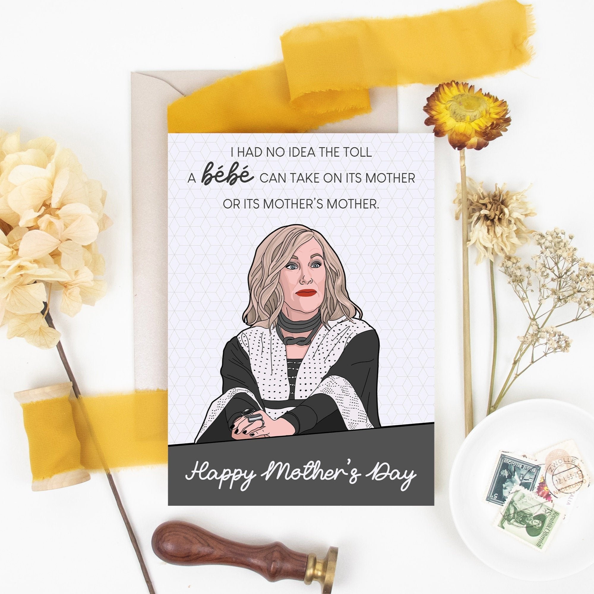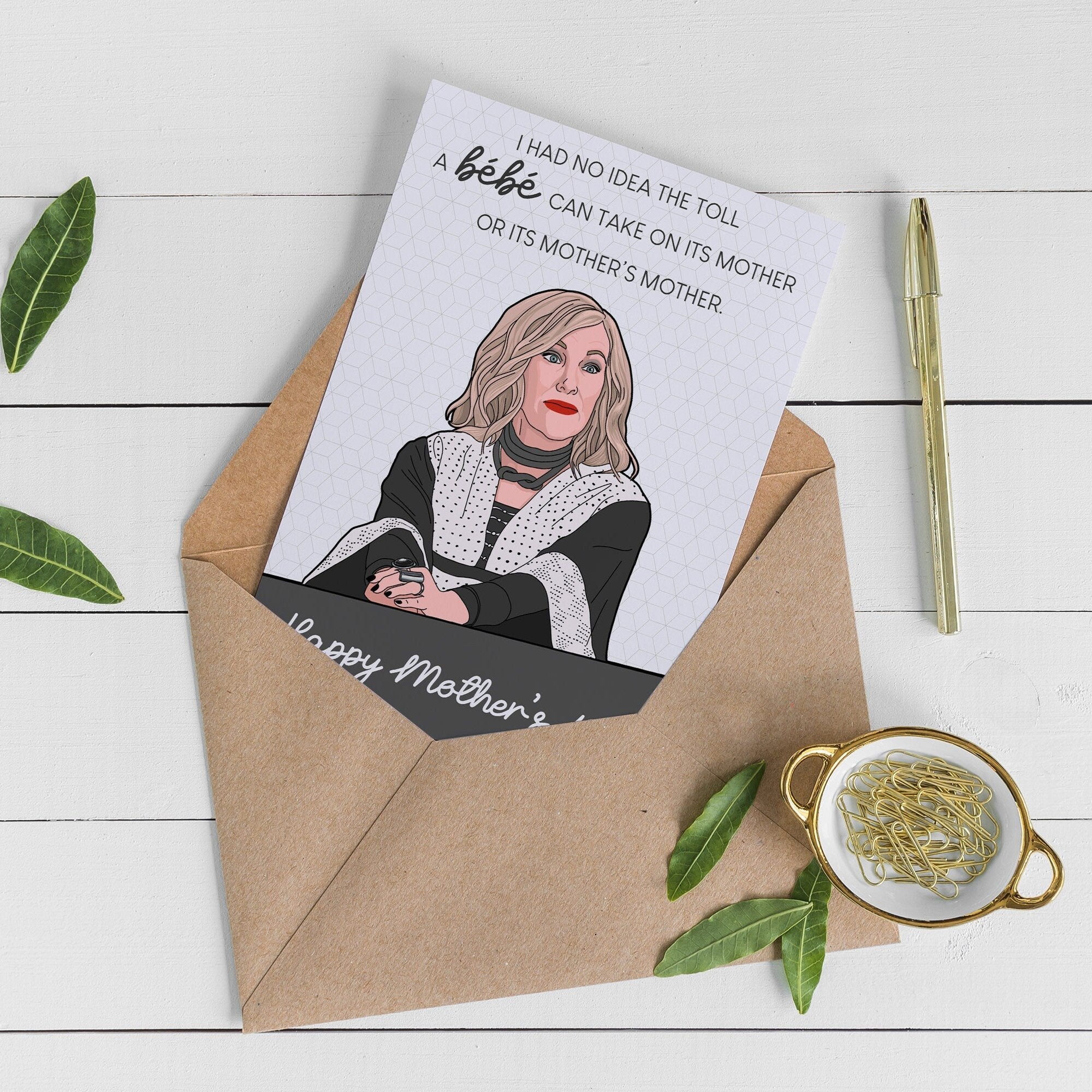 Show the mom, grandmother, or maternal figure in your life how much you appreciate them while making them laugh at the same time with this funny handmade Mother’s Day Card featuring the legendary mother herself, Moira Rose from the show Schitt’s Creek.