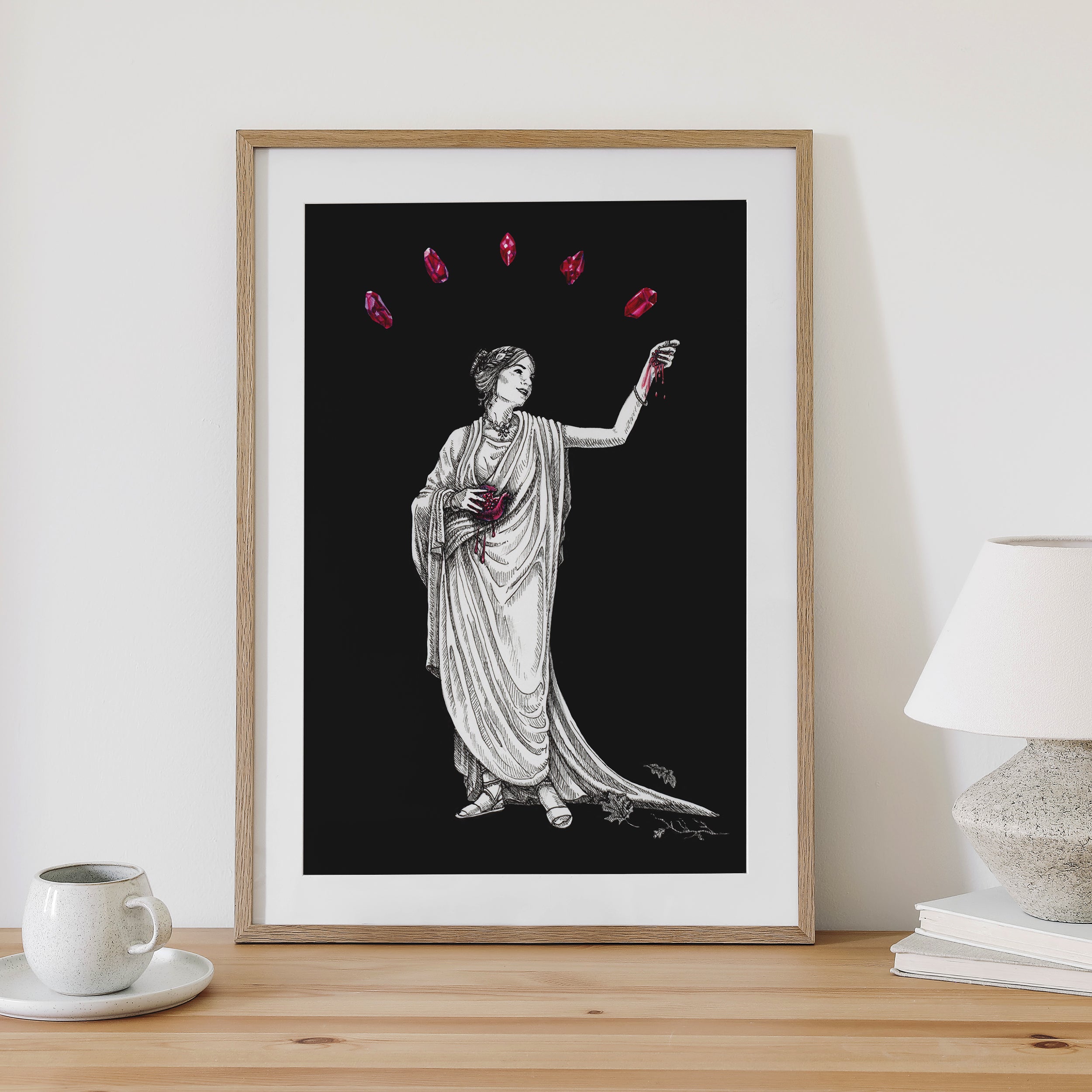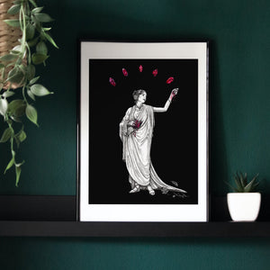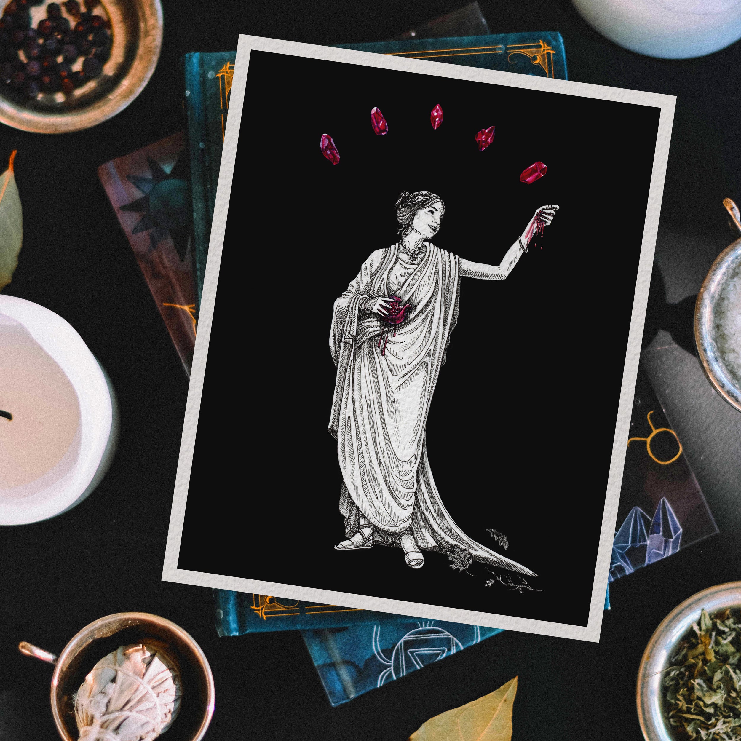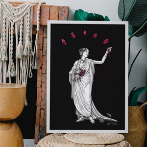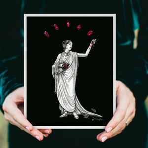 Add this print as a perfect addition to any moody or dark academia styled space, or as a gift for the crystal enthusiast or mythology loving bookworm in your life.