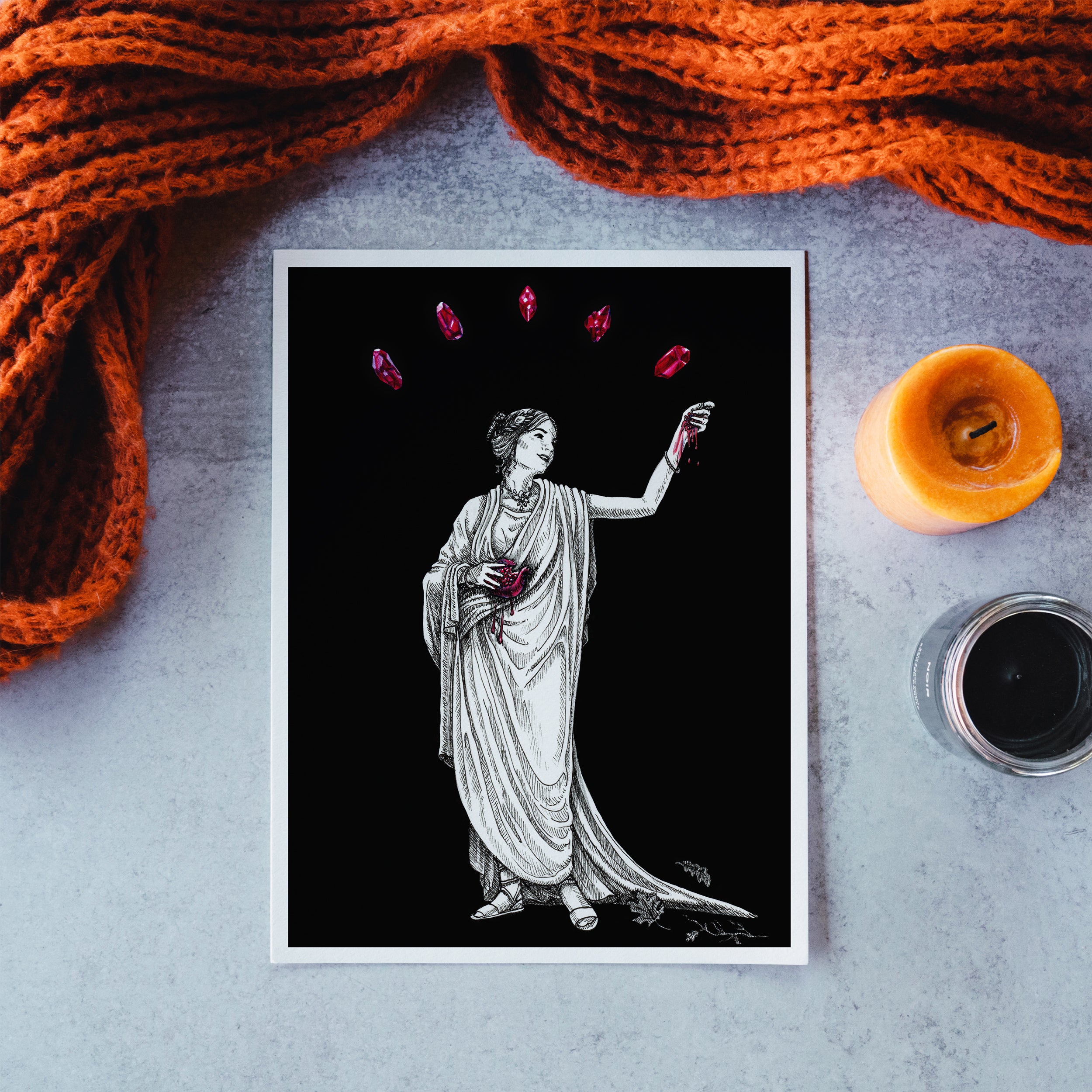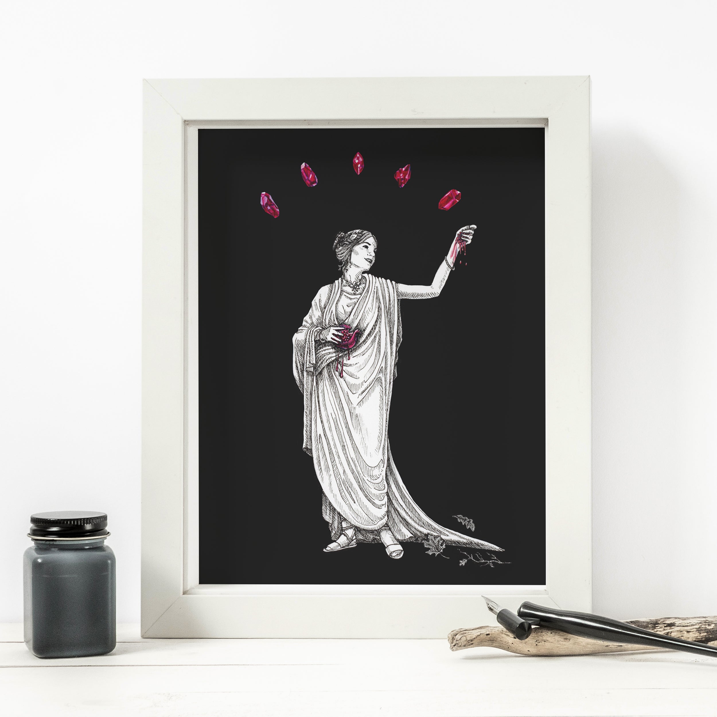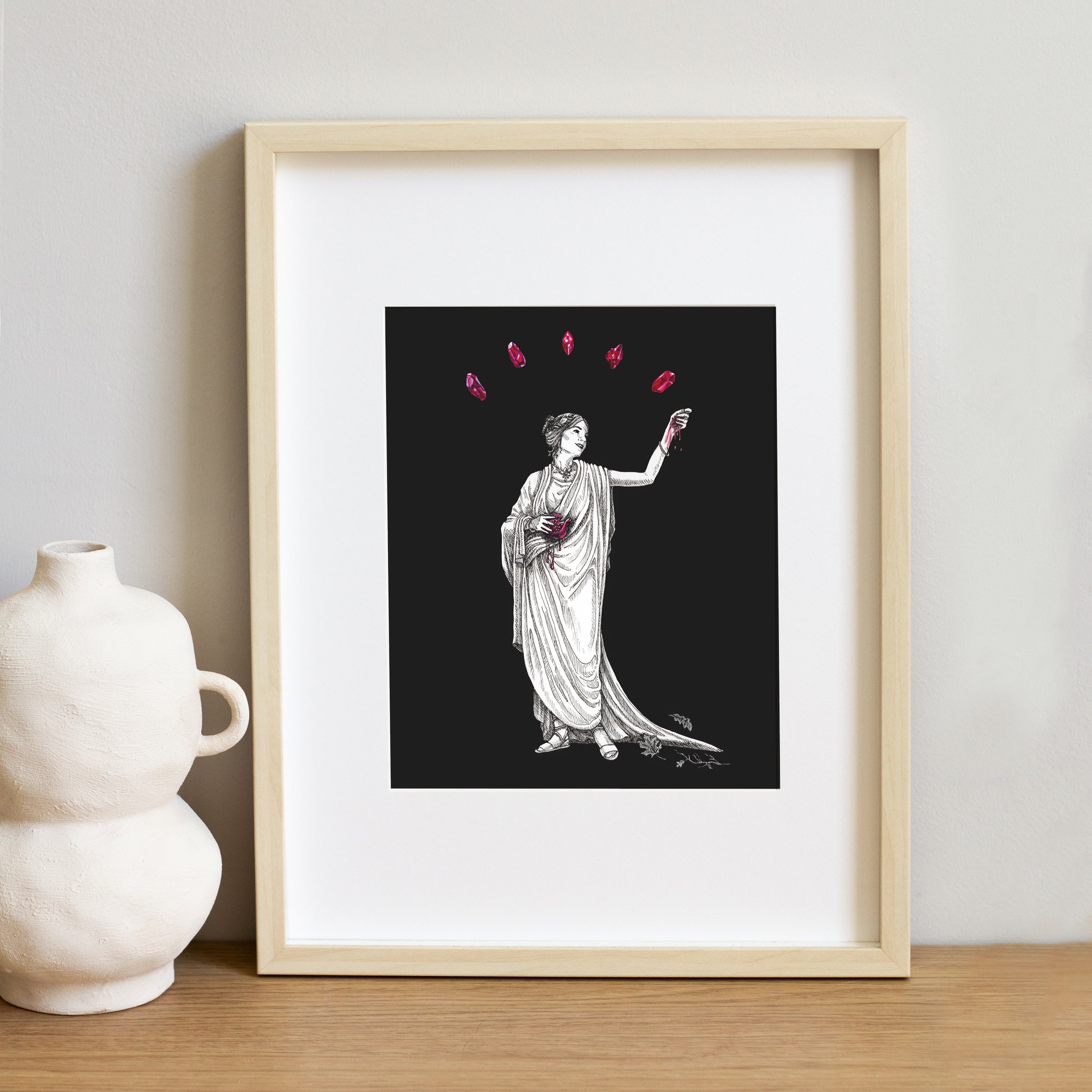 Add this print as a perfect addition to any moody or dark academia styled space, or as a gift for the crystal enthusiast or mythology loving bookworm in your life.
