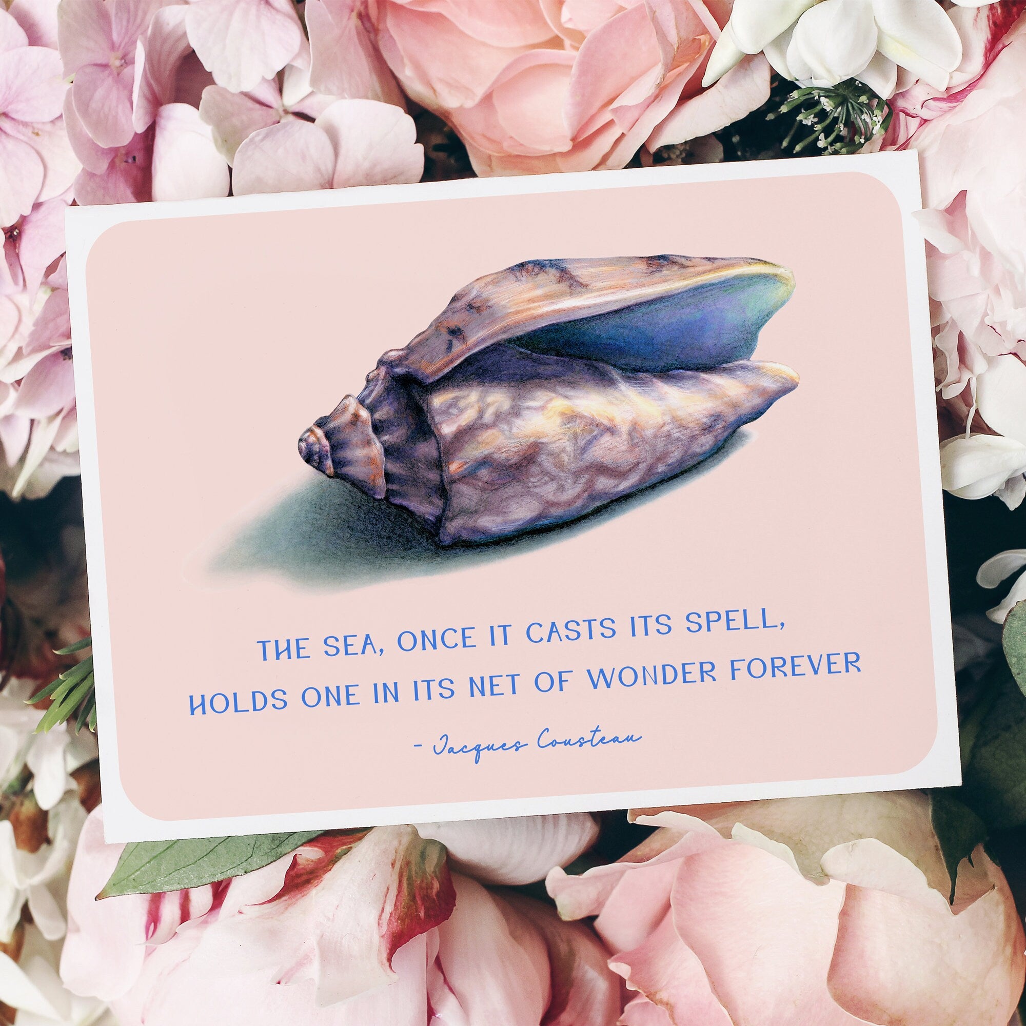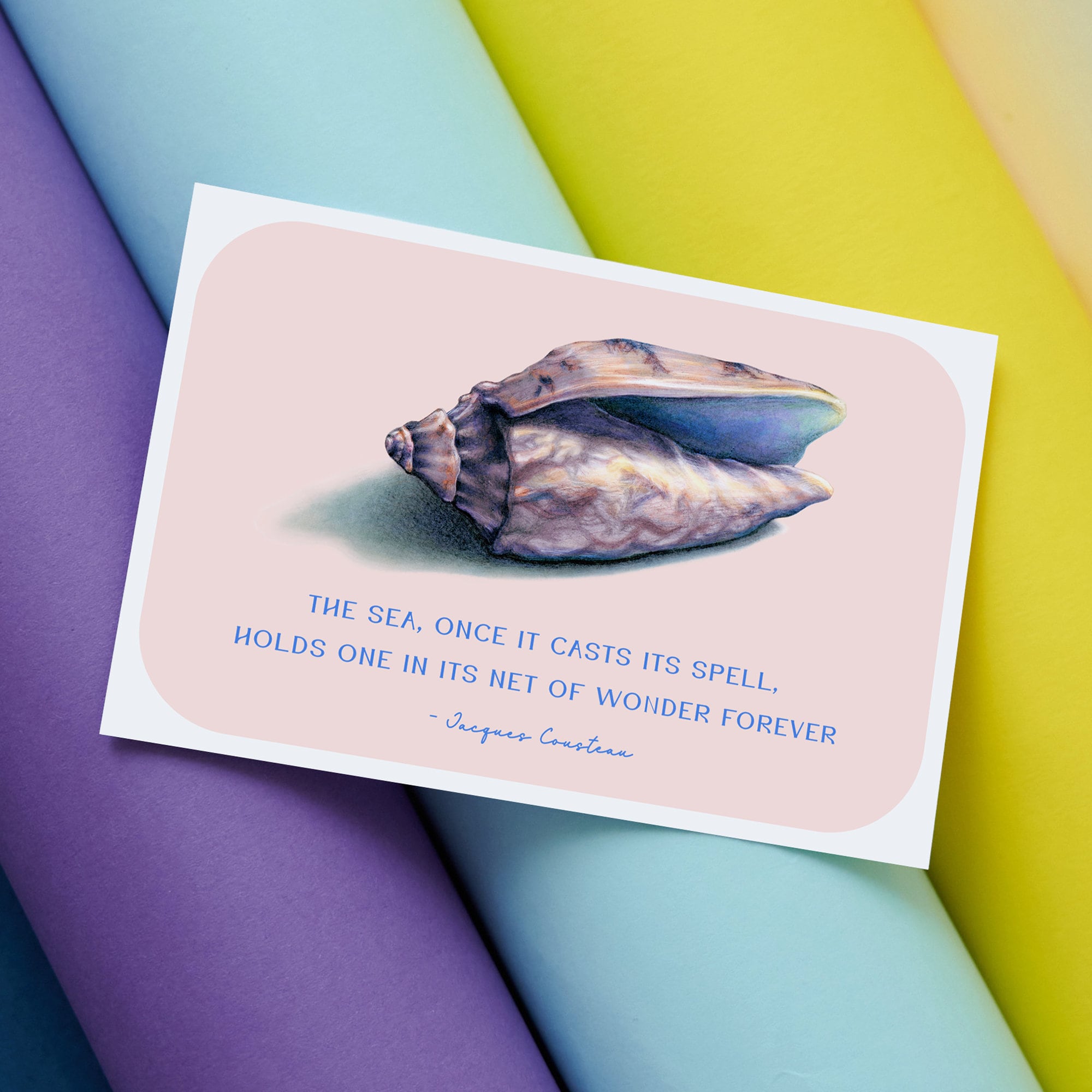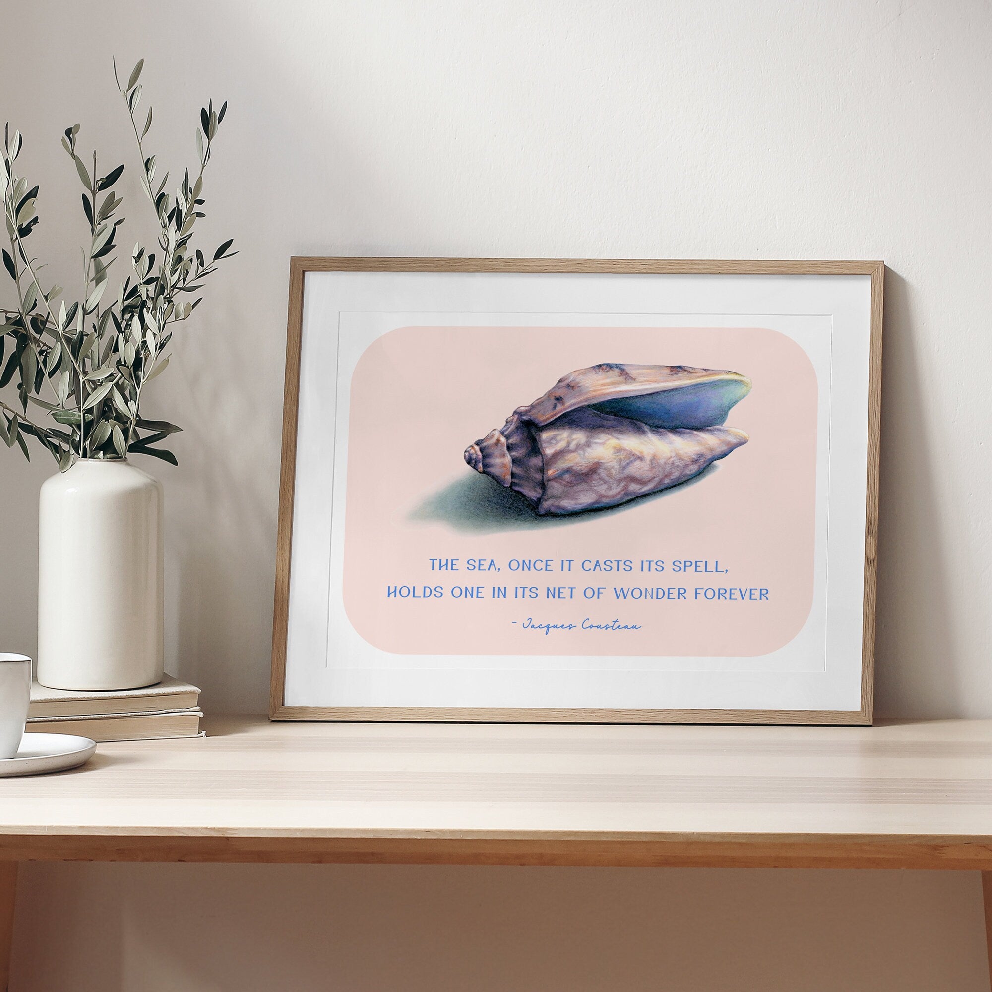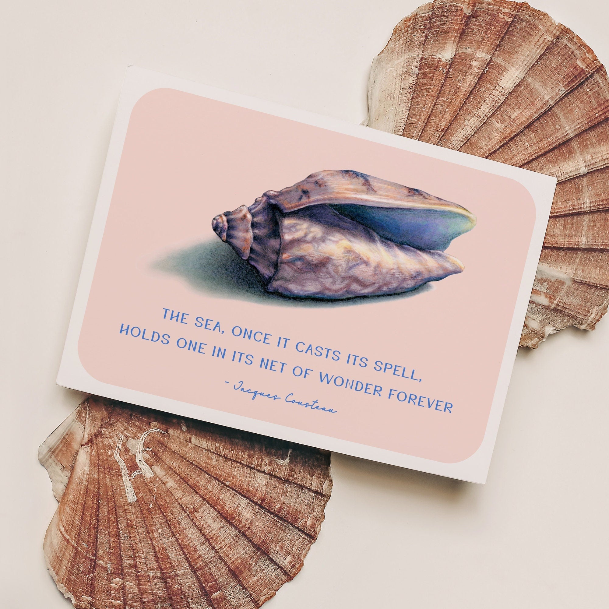 Seashell Jacques Cousteau Quote Art Print