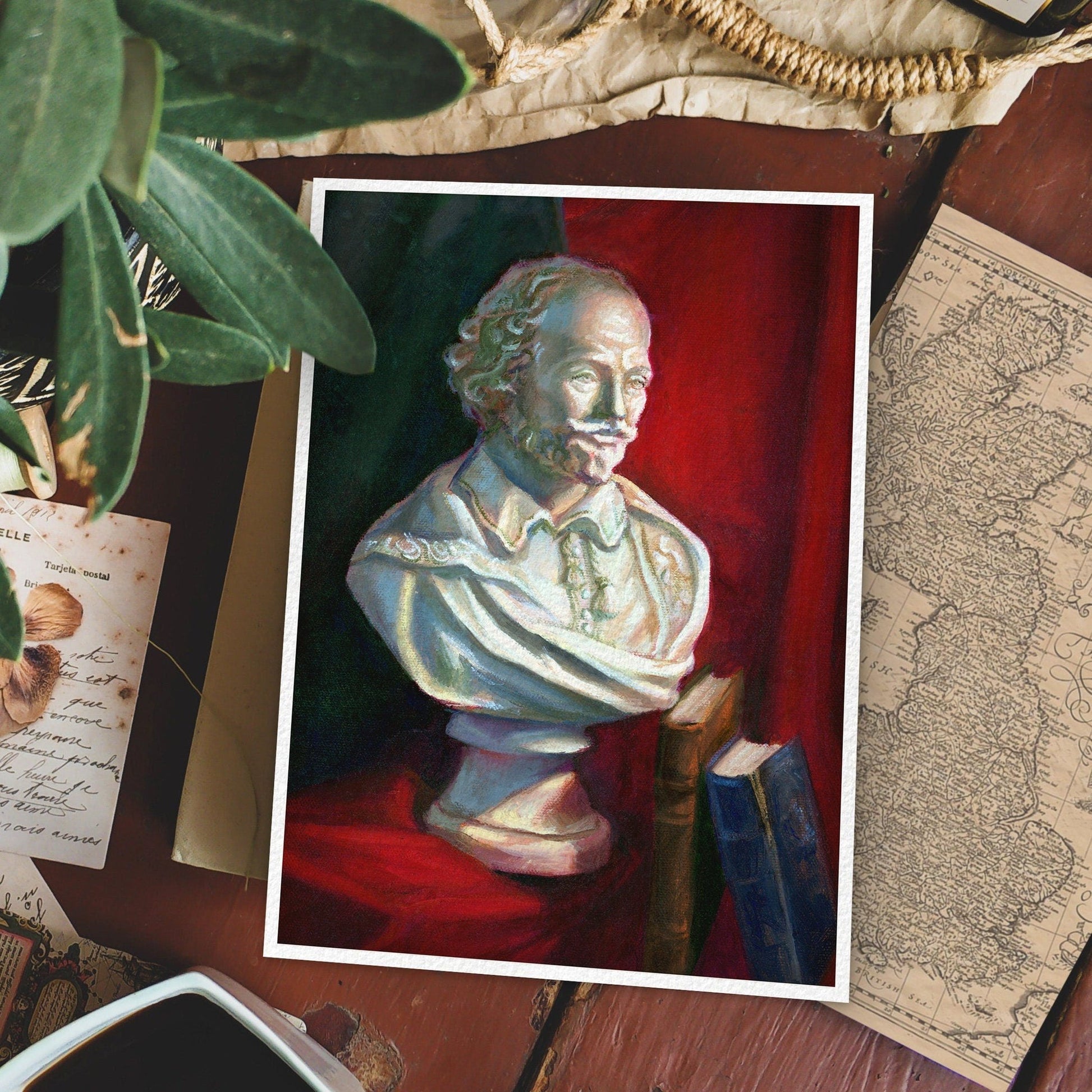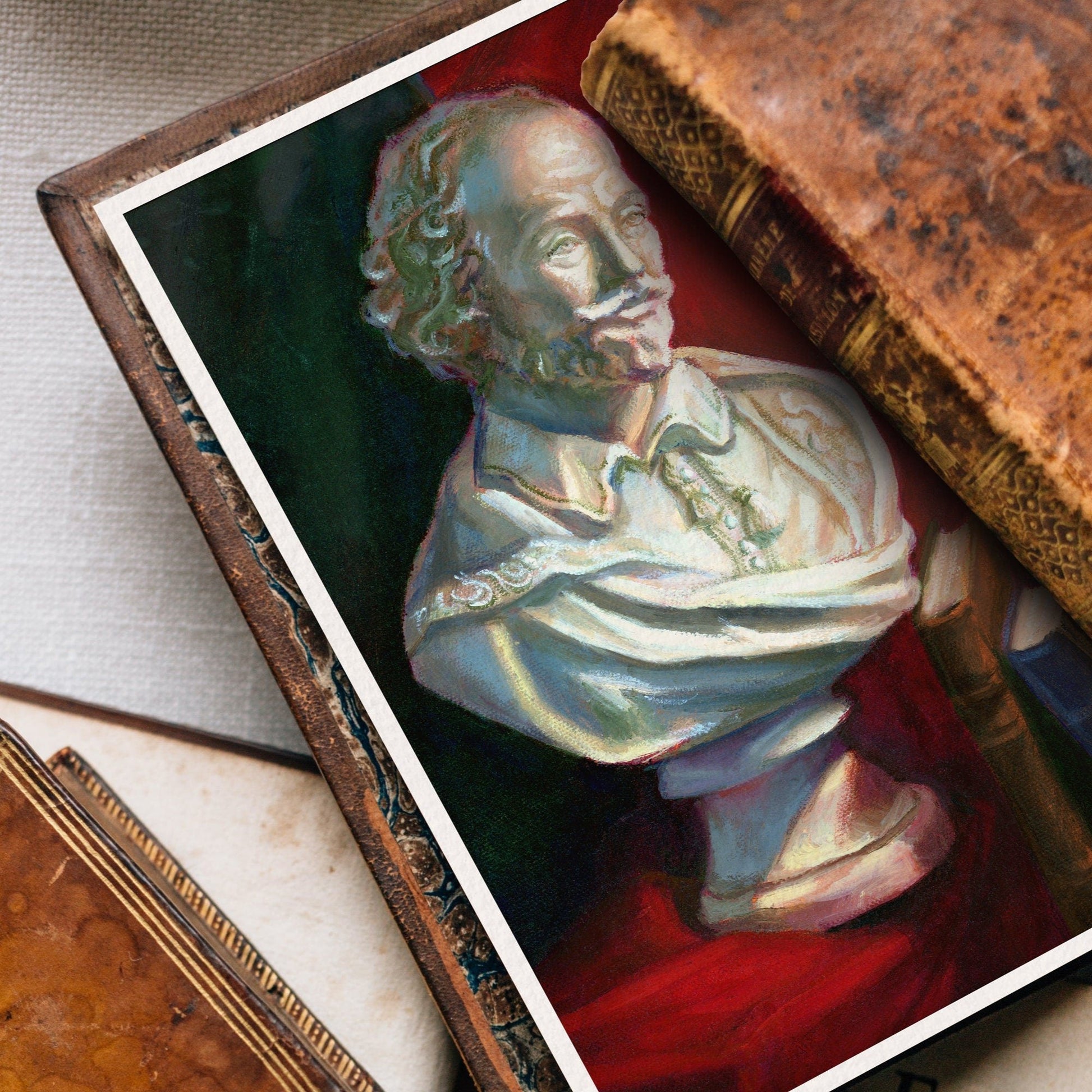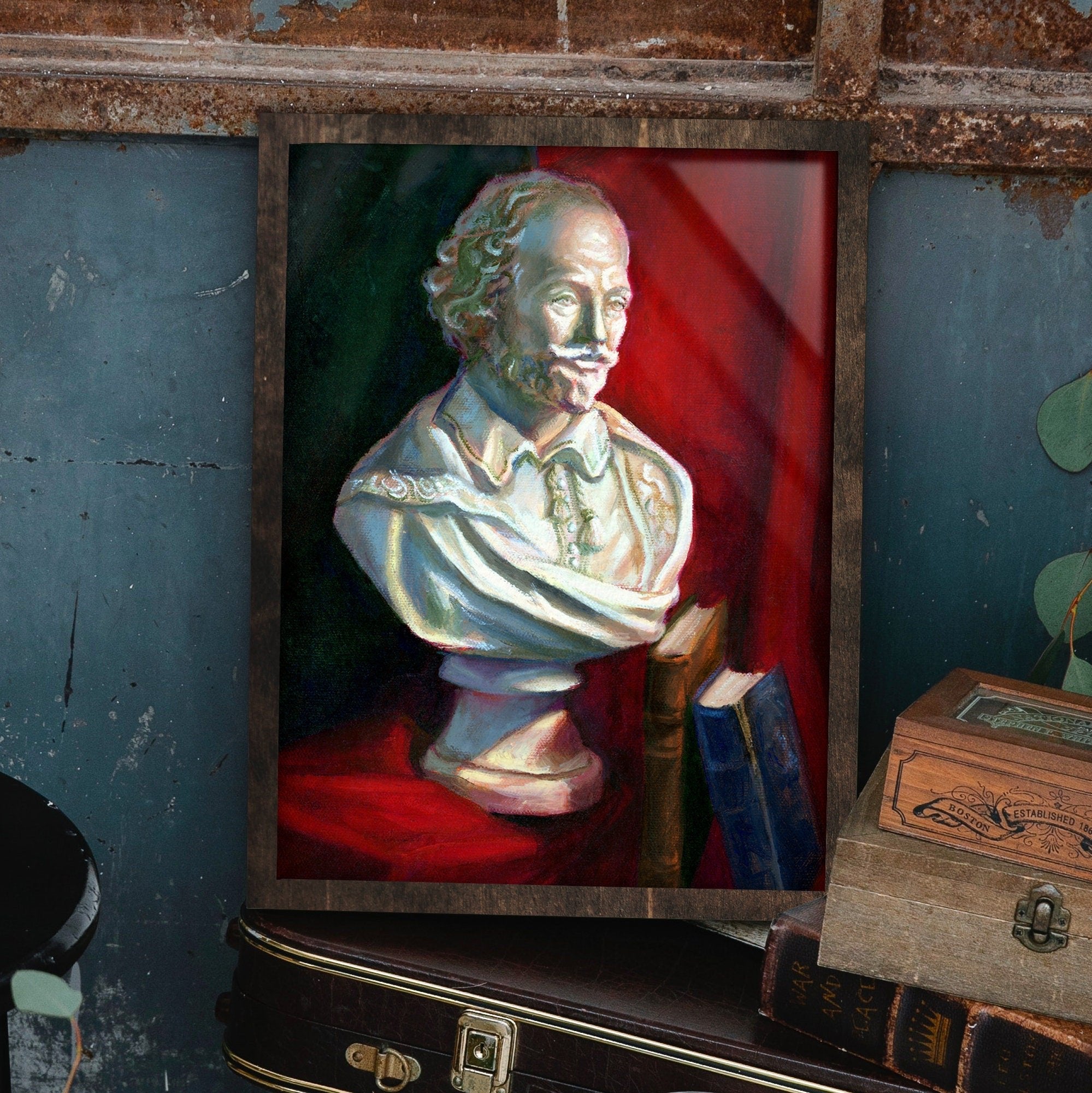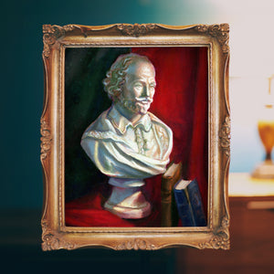 Add this print as a perfect complement to any light or dark academia styled spaces, or as a gift for the writer or history loving bookworm in your life. I created the original artwork using oil paint on canvas and setup this still life as an homage to the works of William Shakespeare and a love for the moody tones of the Renaissance and Elizabethan style.