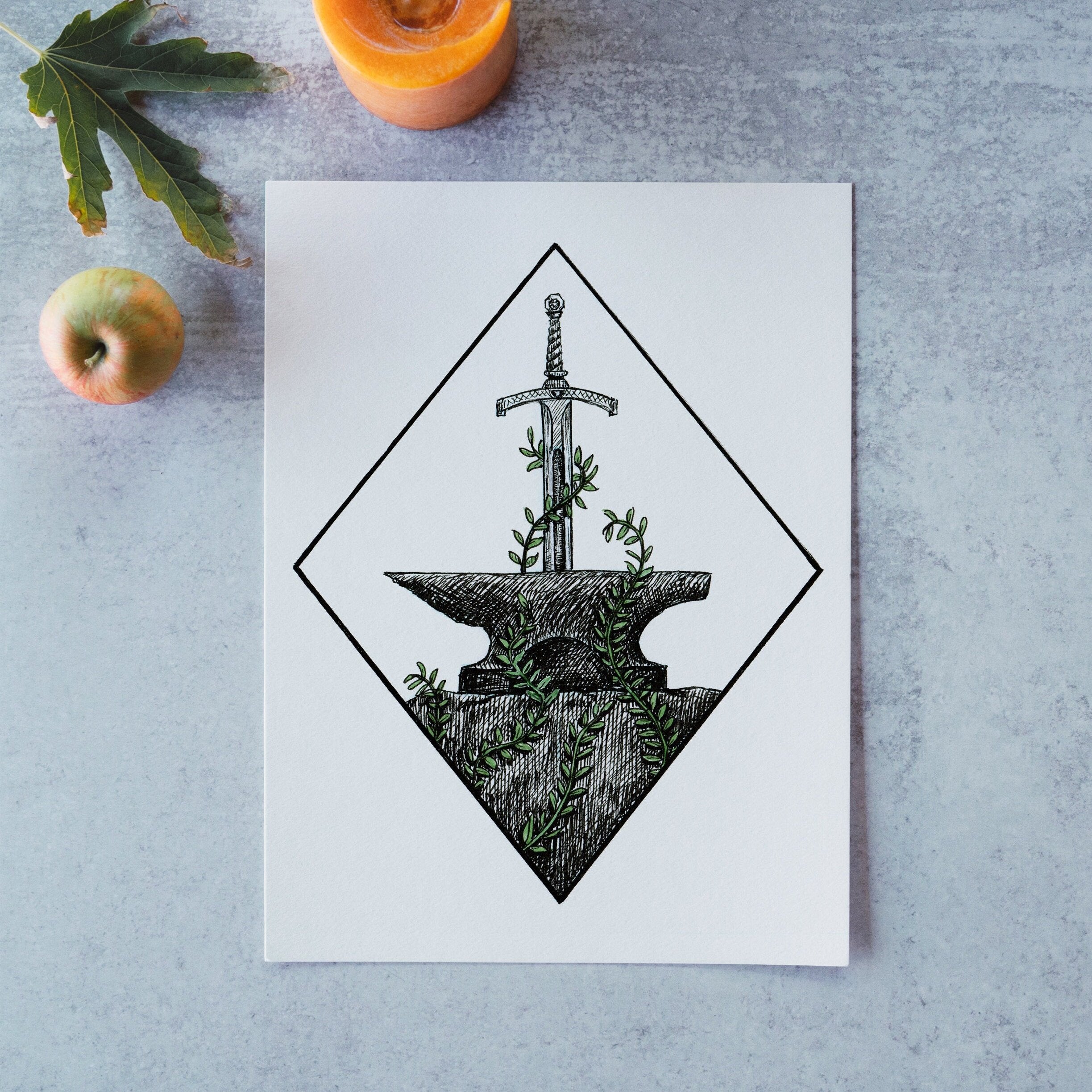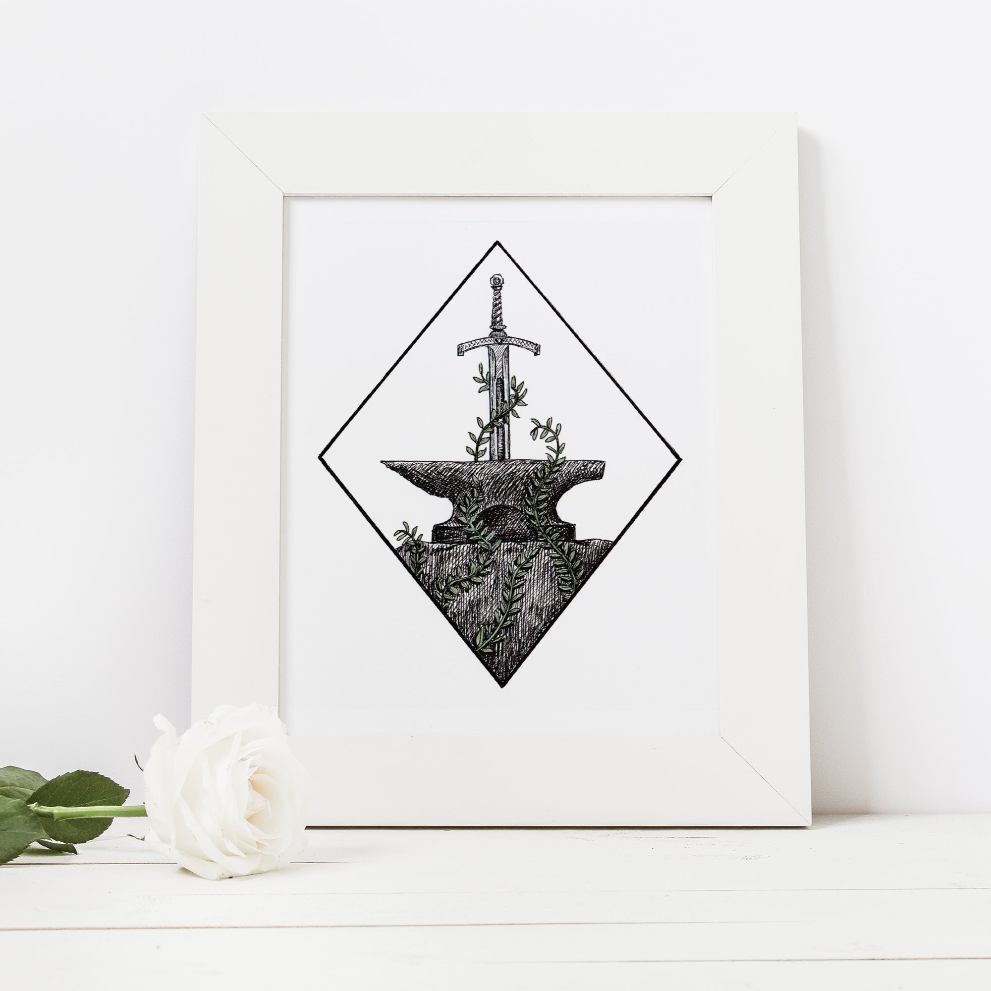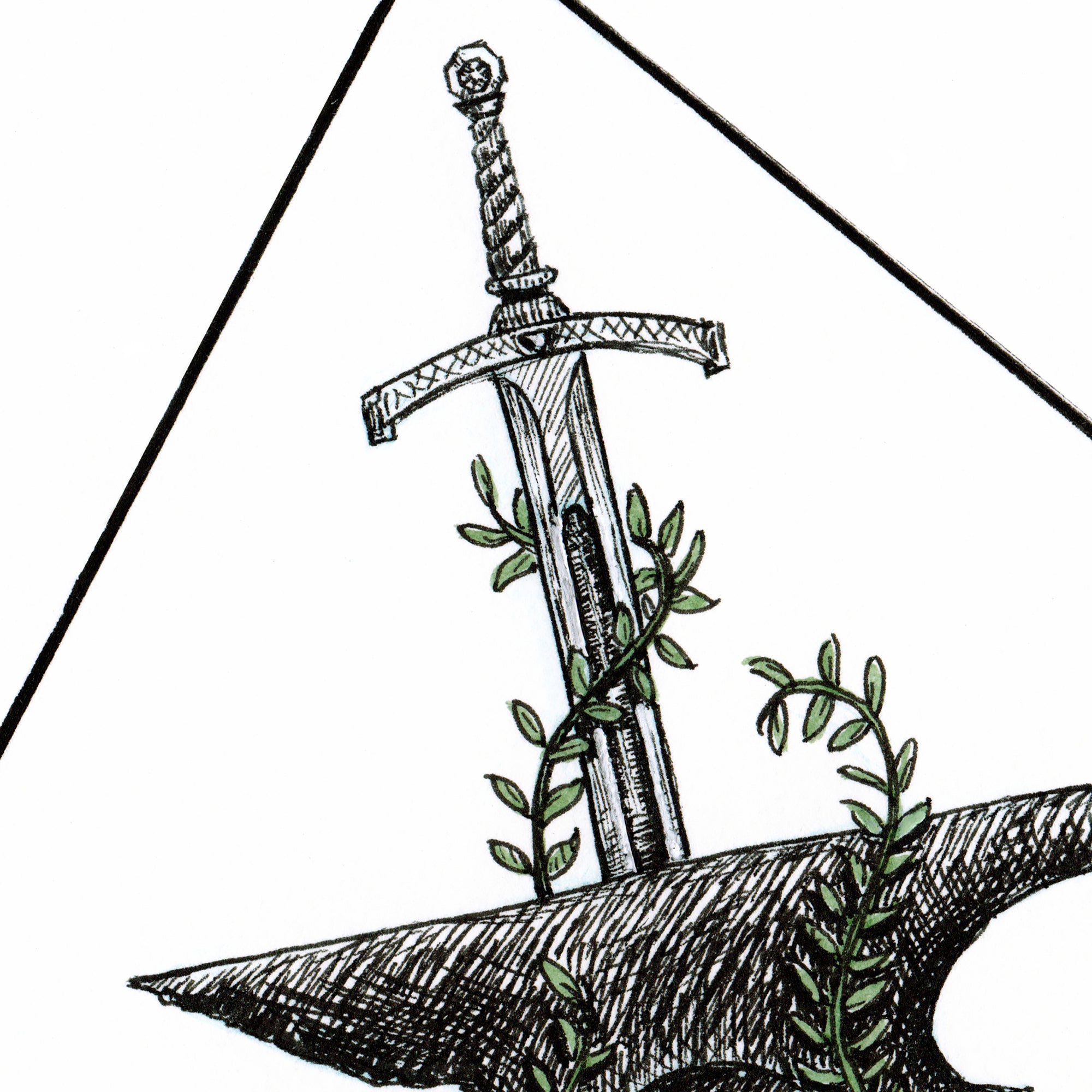 Call me a nerd, but I love being swept away into classic tales and legends of knights and wizards and dragons! This piece was inspired by the ancient legend of The Sword in the Stone, first mentioned in Robert de Boron’s epic poem, “Merlin.”