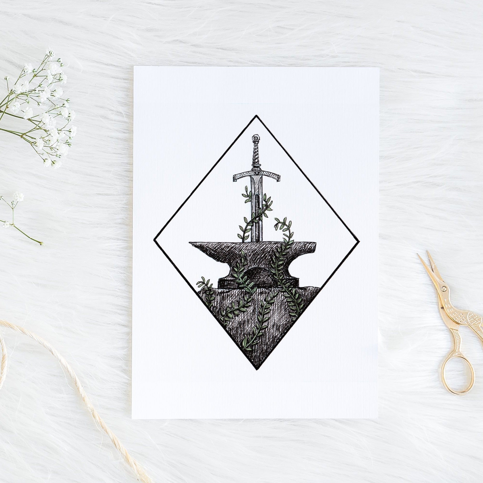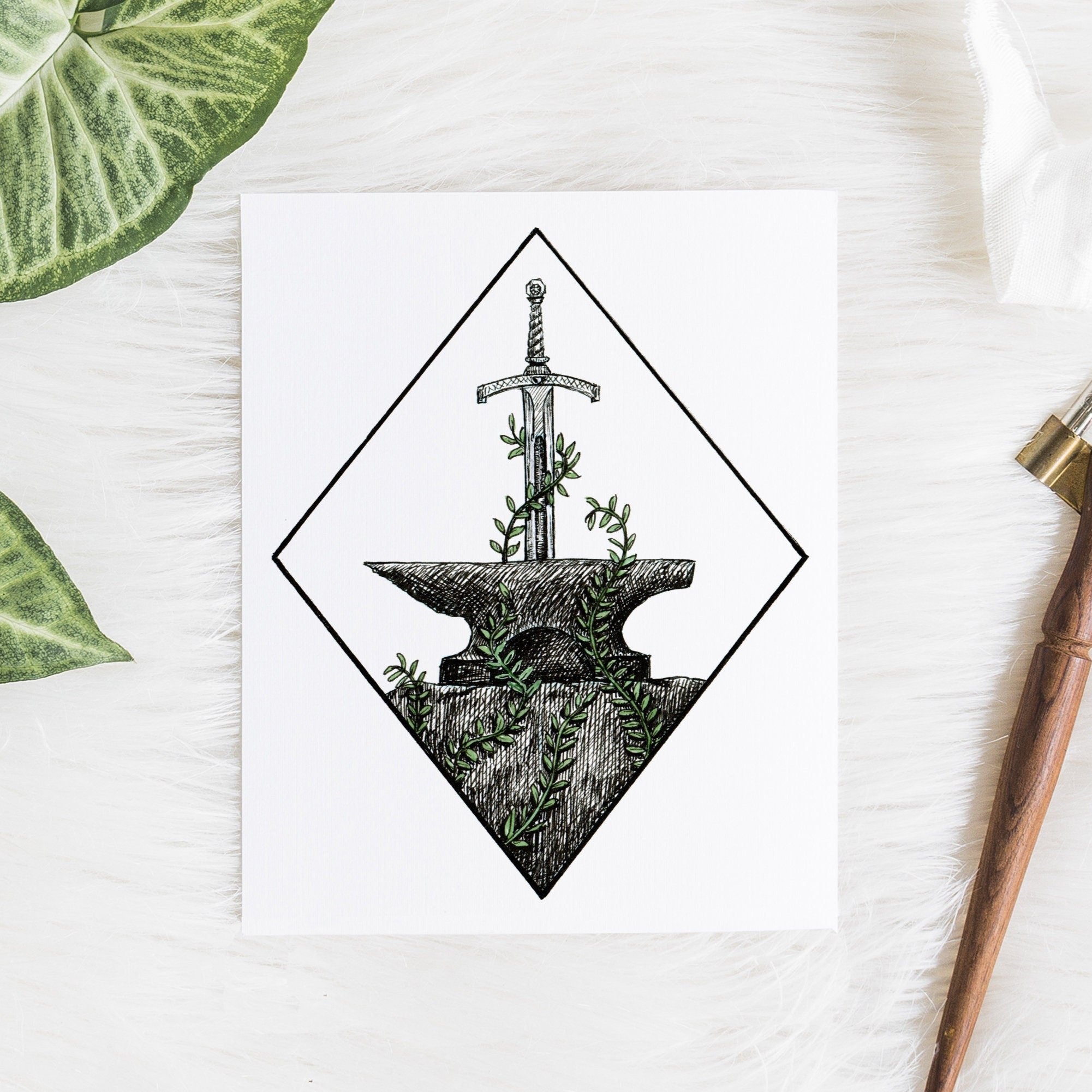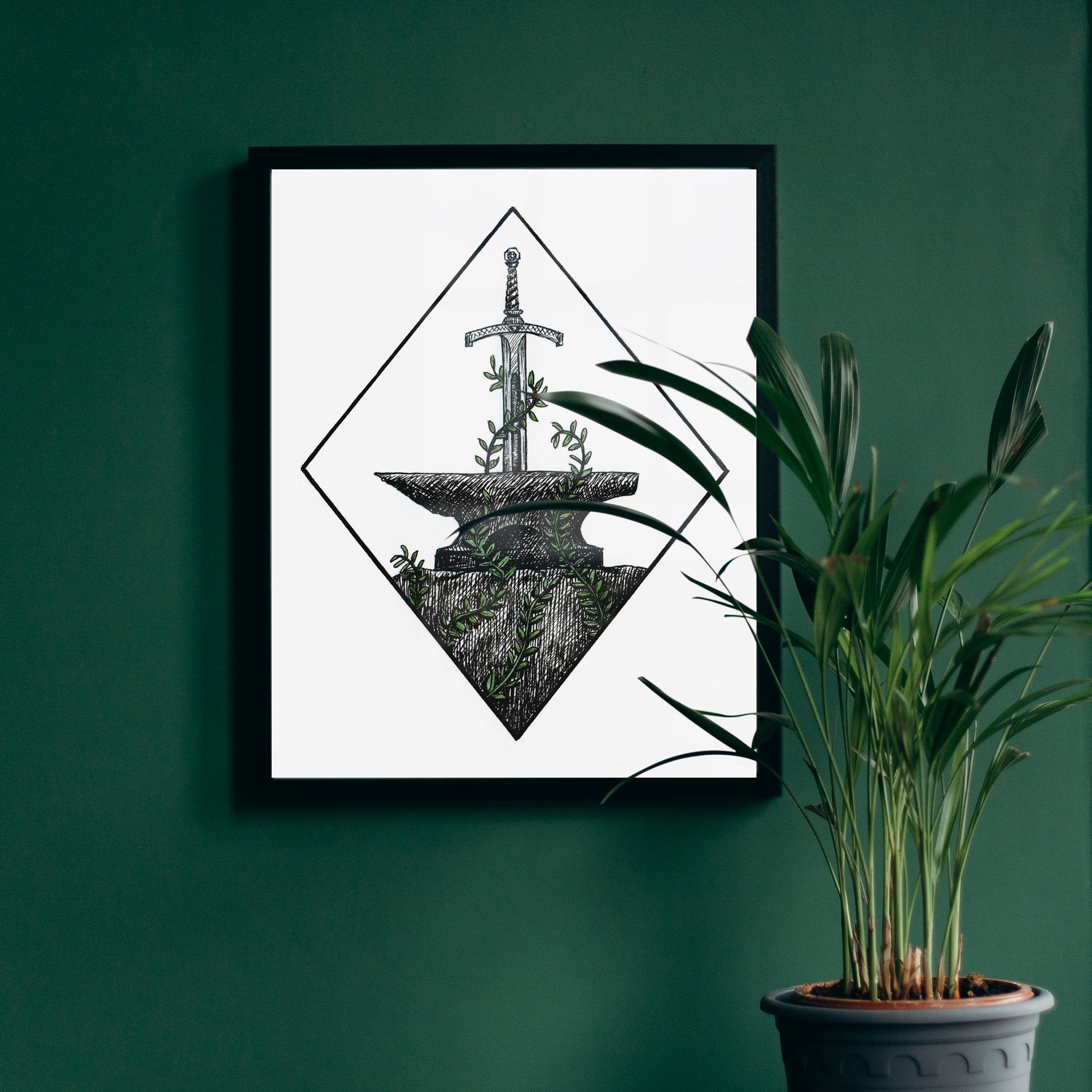 Call me a nerd, but I love being swept away into classic tales and legends of knights and wizards and dragons! This piece was inspired by the ancient legend of The Sword in the Stone, first mentioned in Robert de Boron’s epic poem, “Merlin.”