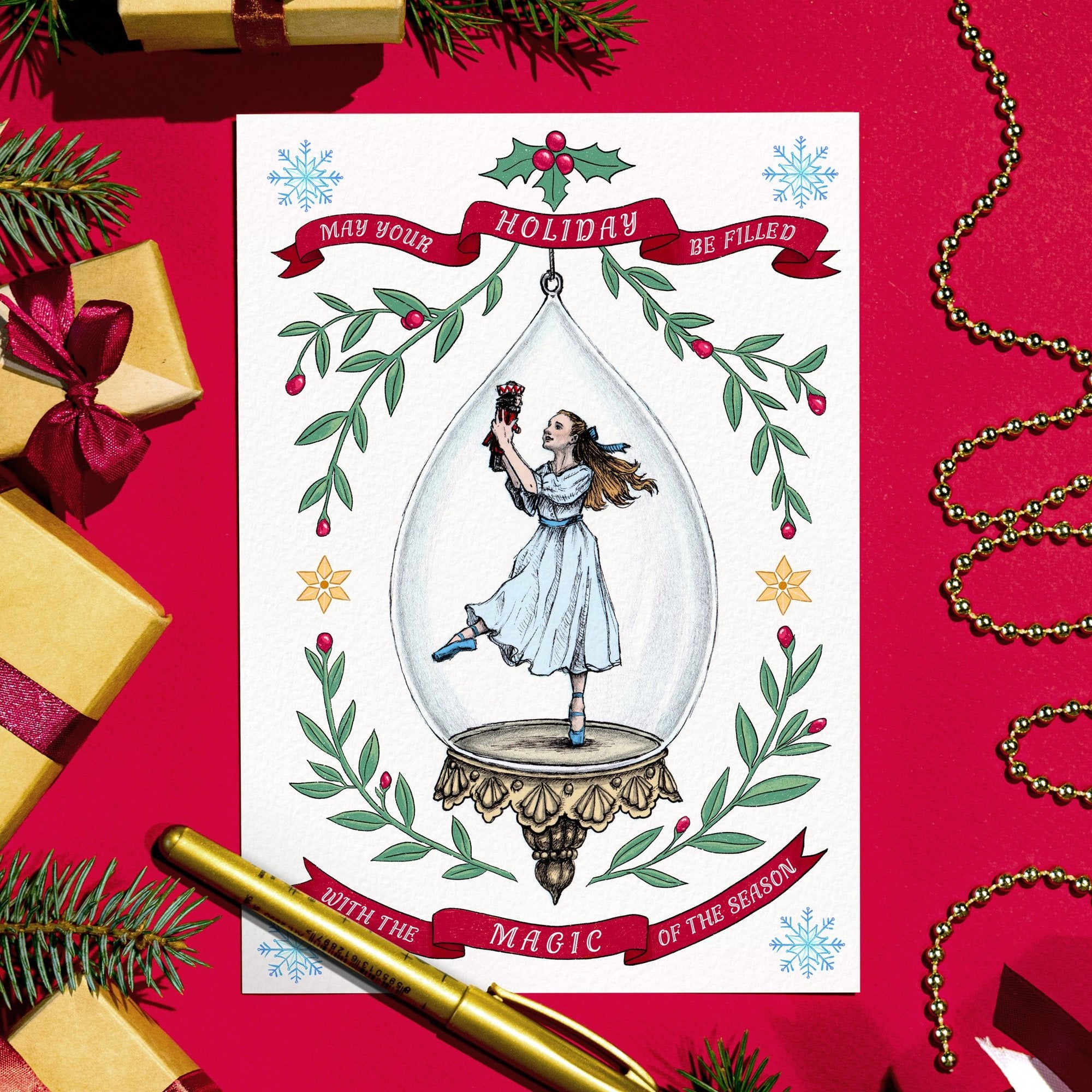 Enchant your friends and family this holiday season with a handmade Christmas card filled with the magic and tradition of the holiday classic, The Nutcracker Ballet.