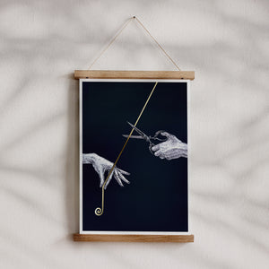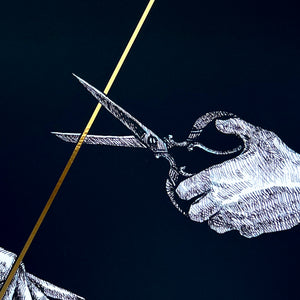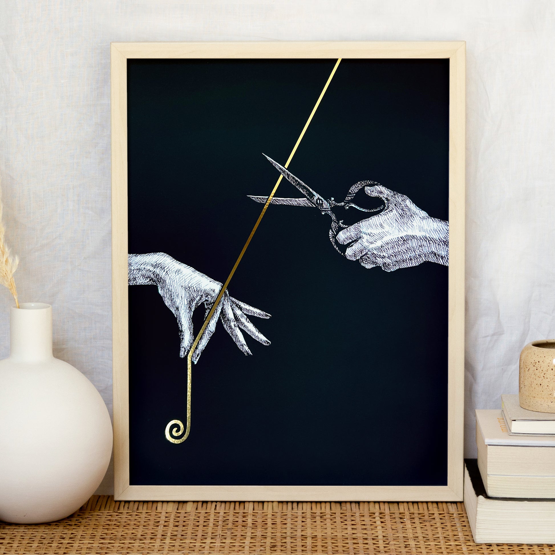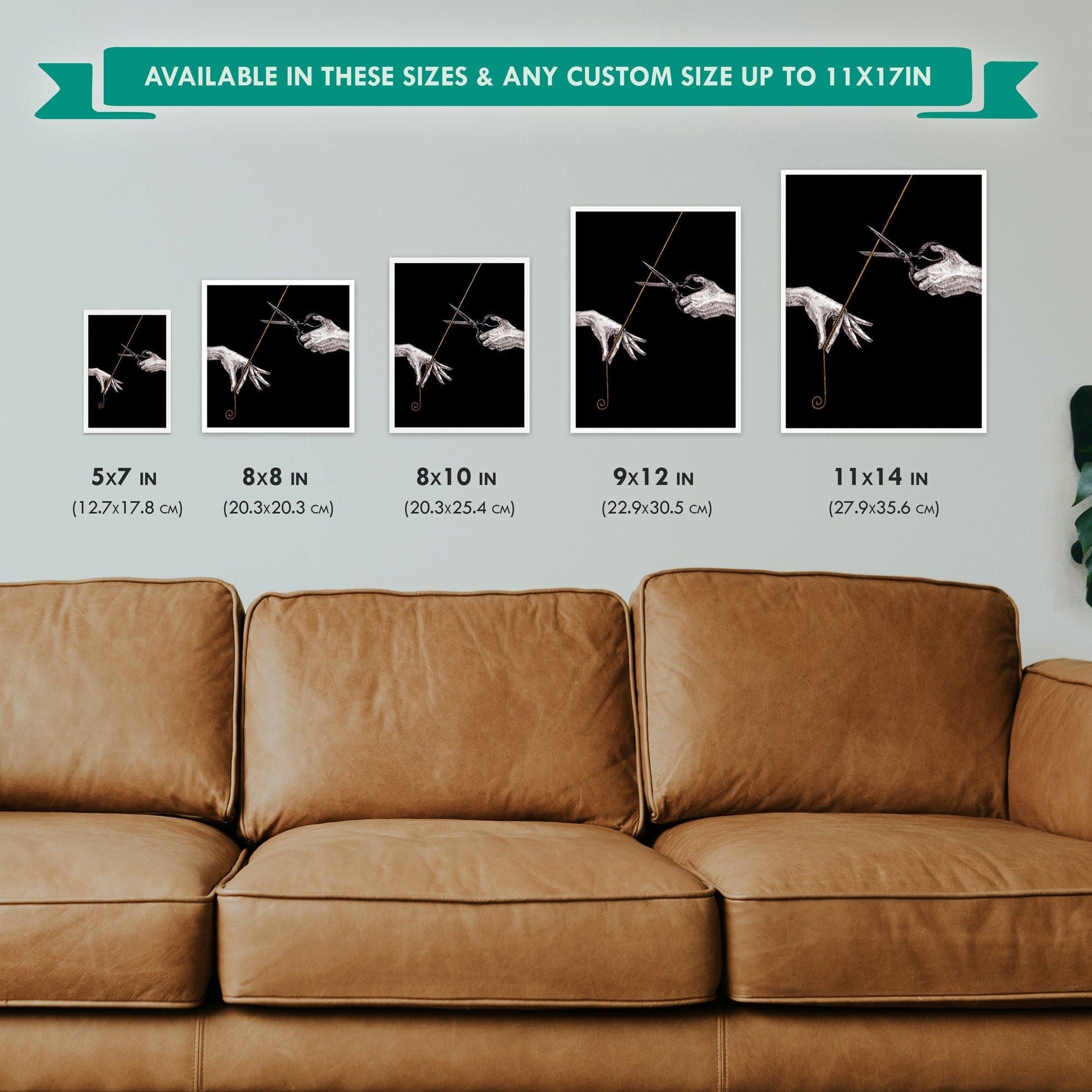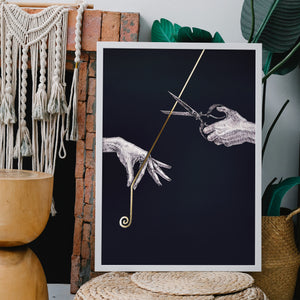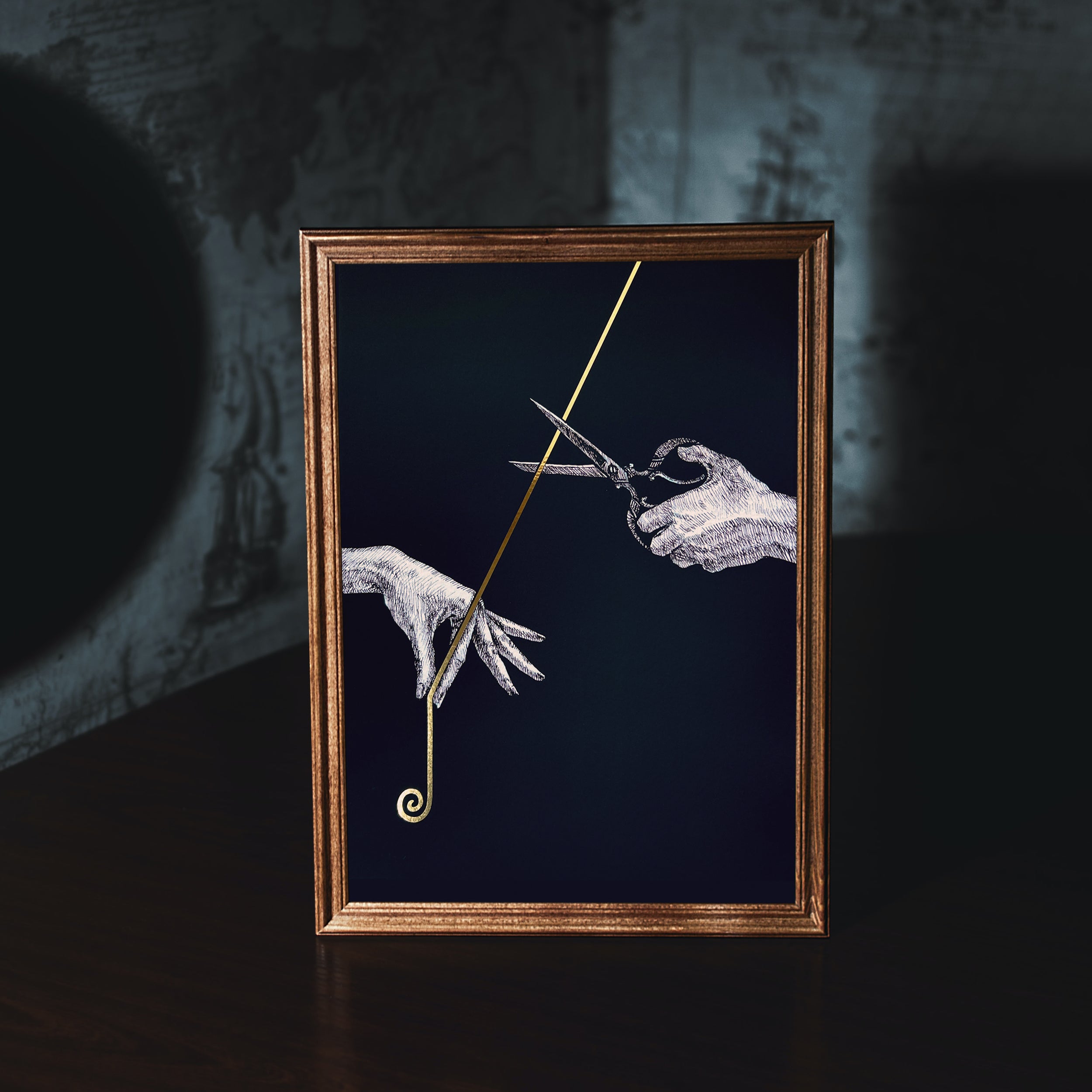 This piece was inspired by the story of The Fates and the Thread of Life from ancient Greek Mythology and was made using ink on watercolor paper. This art print is made on gallery-quality cotton paper, comes hand-signed on the front, and numbered, titled and dated on the back. Frame NOT included.