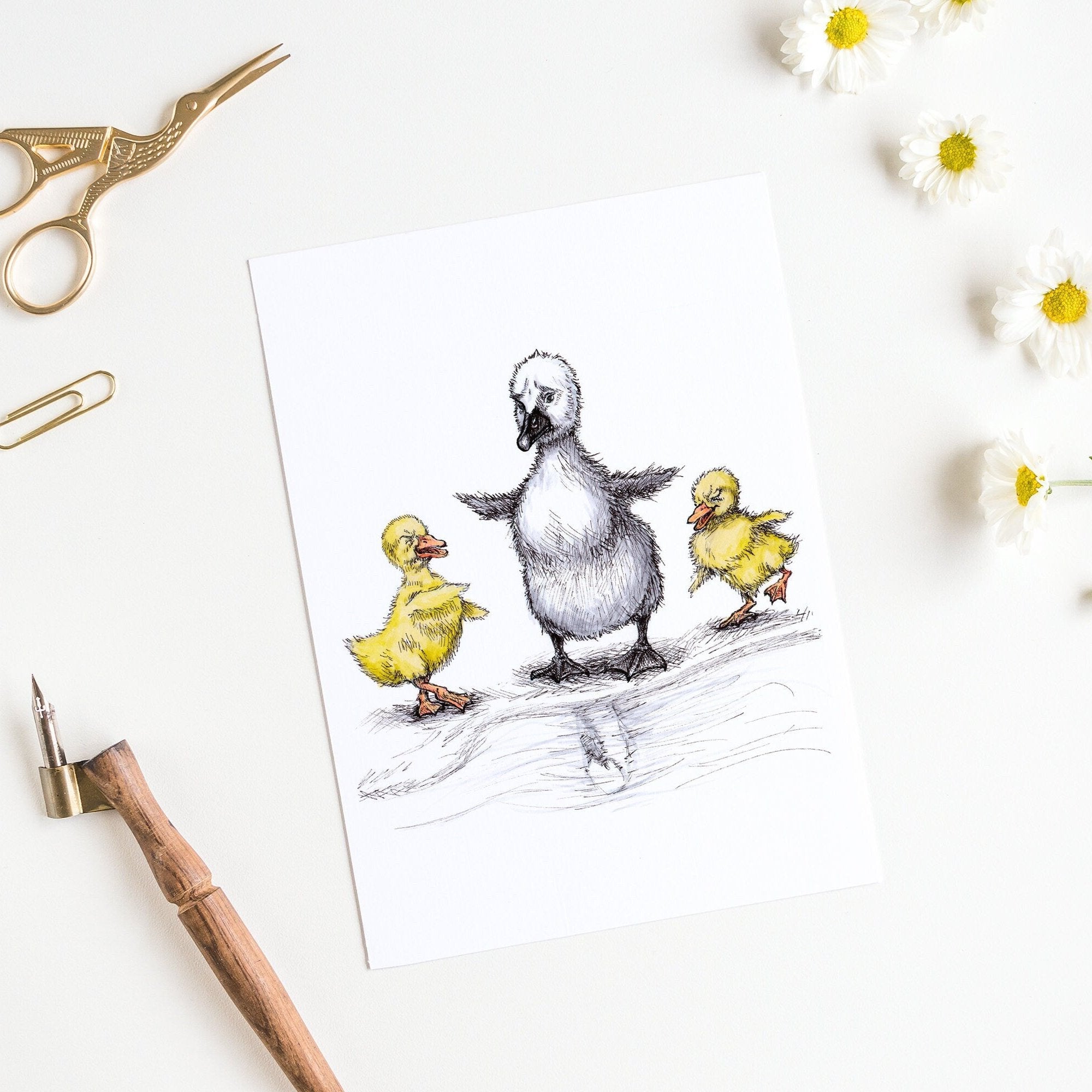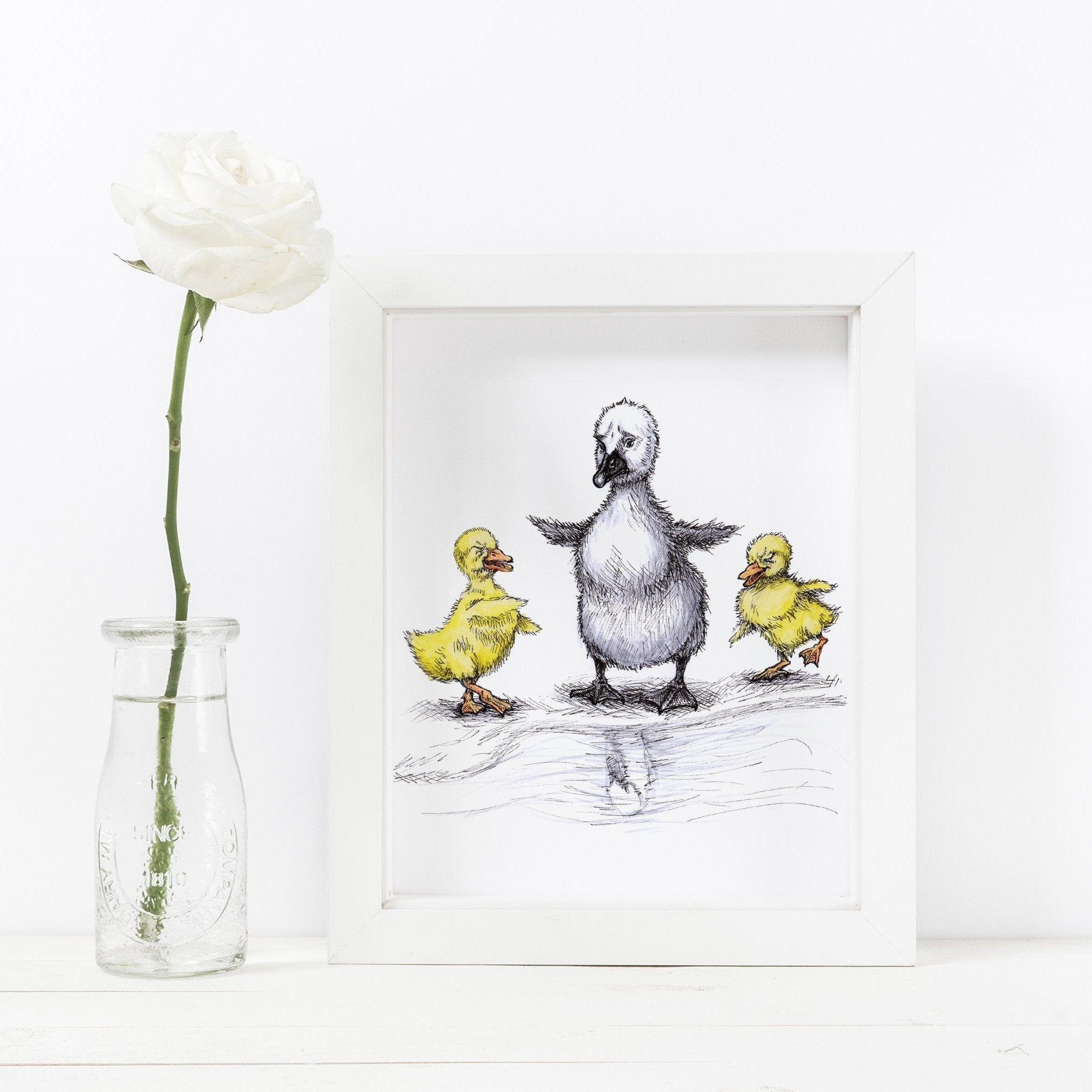 This piece was part of a series I made on classic stories and was inspired by Hans Christian Andersen's story "The Ugly Duckling." The original artwork was created using ink on watercolor paper.